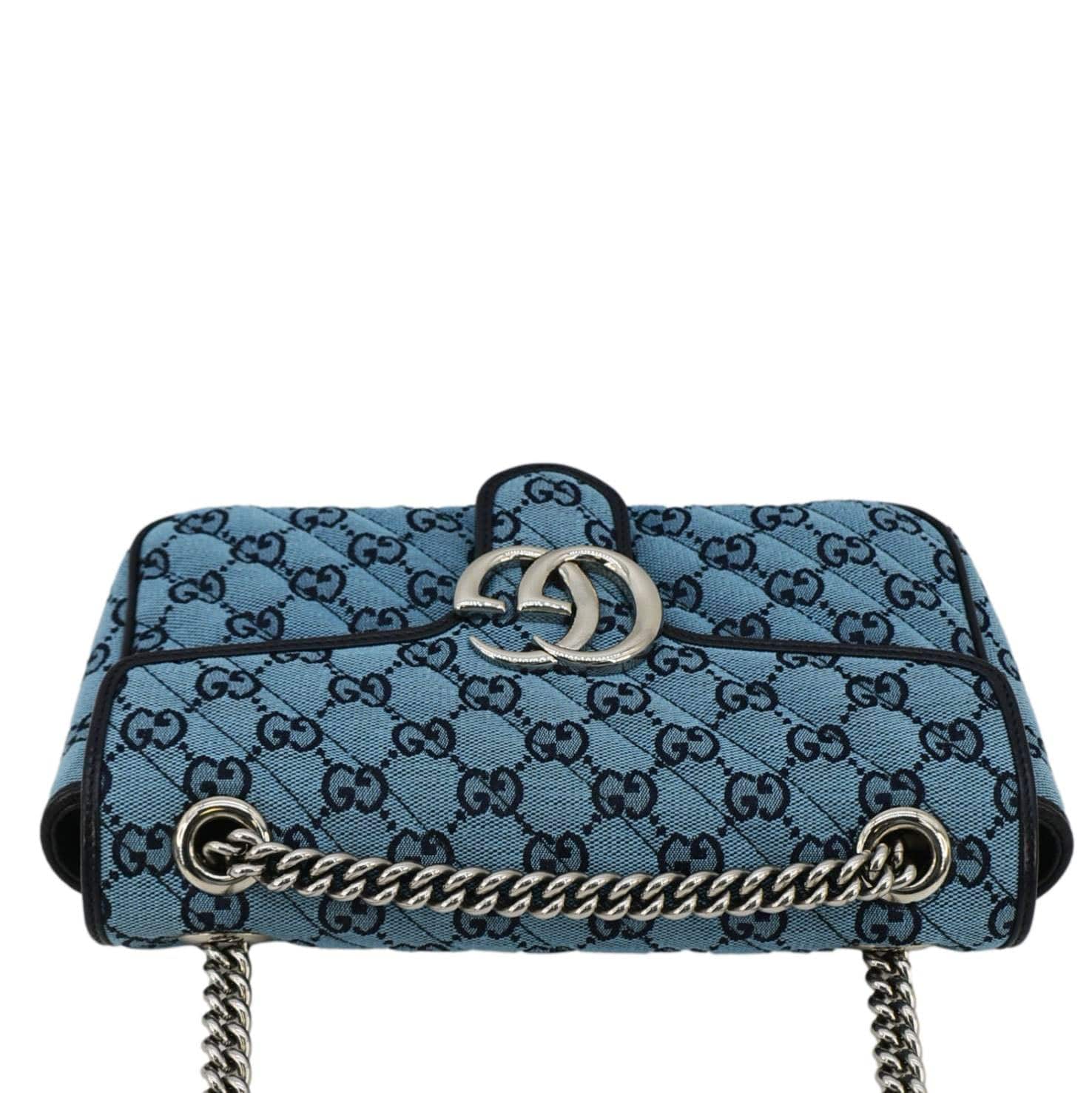 GUCCI GG Marmont Canvas Leather Blue Crossbody Bag