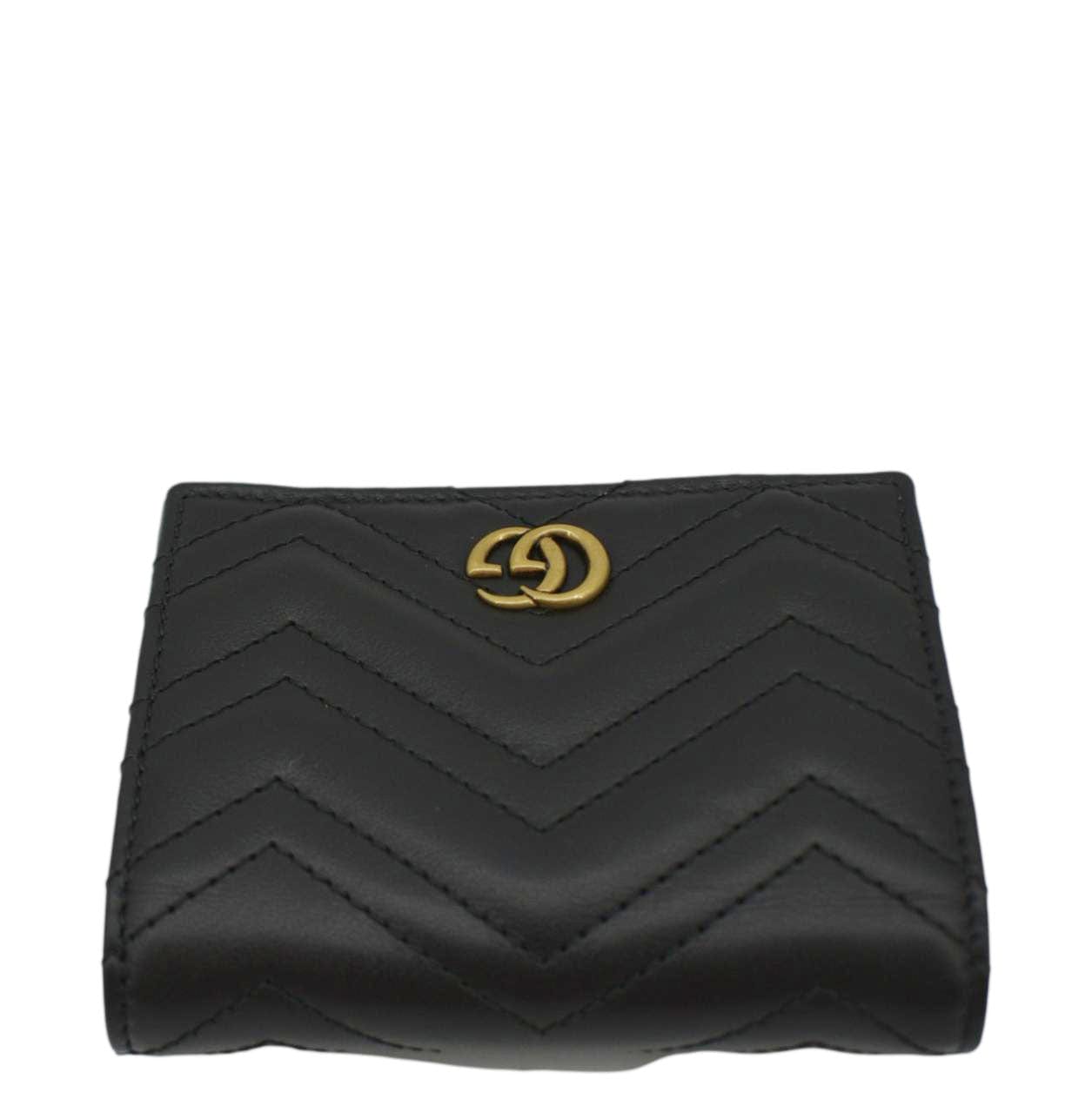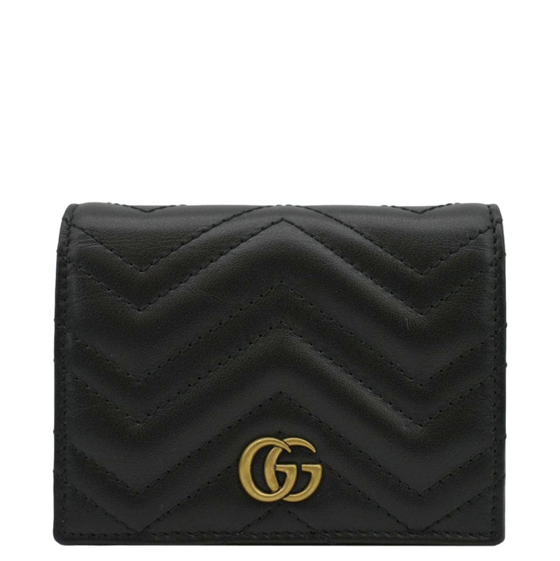 Elevate the Gucci Marmont GG Matelasse Leather Card Case Wallet in sleek Black. This compact accessory exudes sophistication with its matelassé leather and iconic GG logo, making it a stylish statement for your cards and cash.