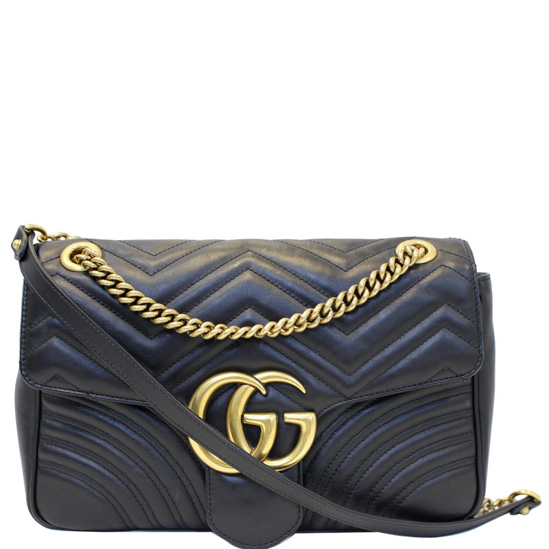 GUCCI GG Marmont Matelasse Leather Shoulder Bag Black 443496