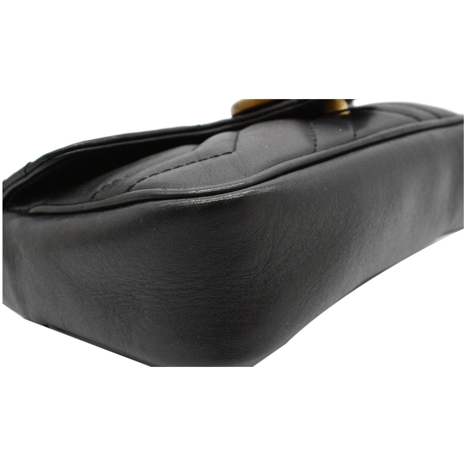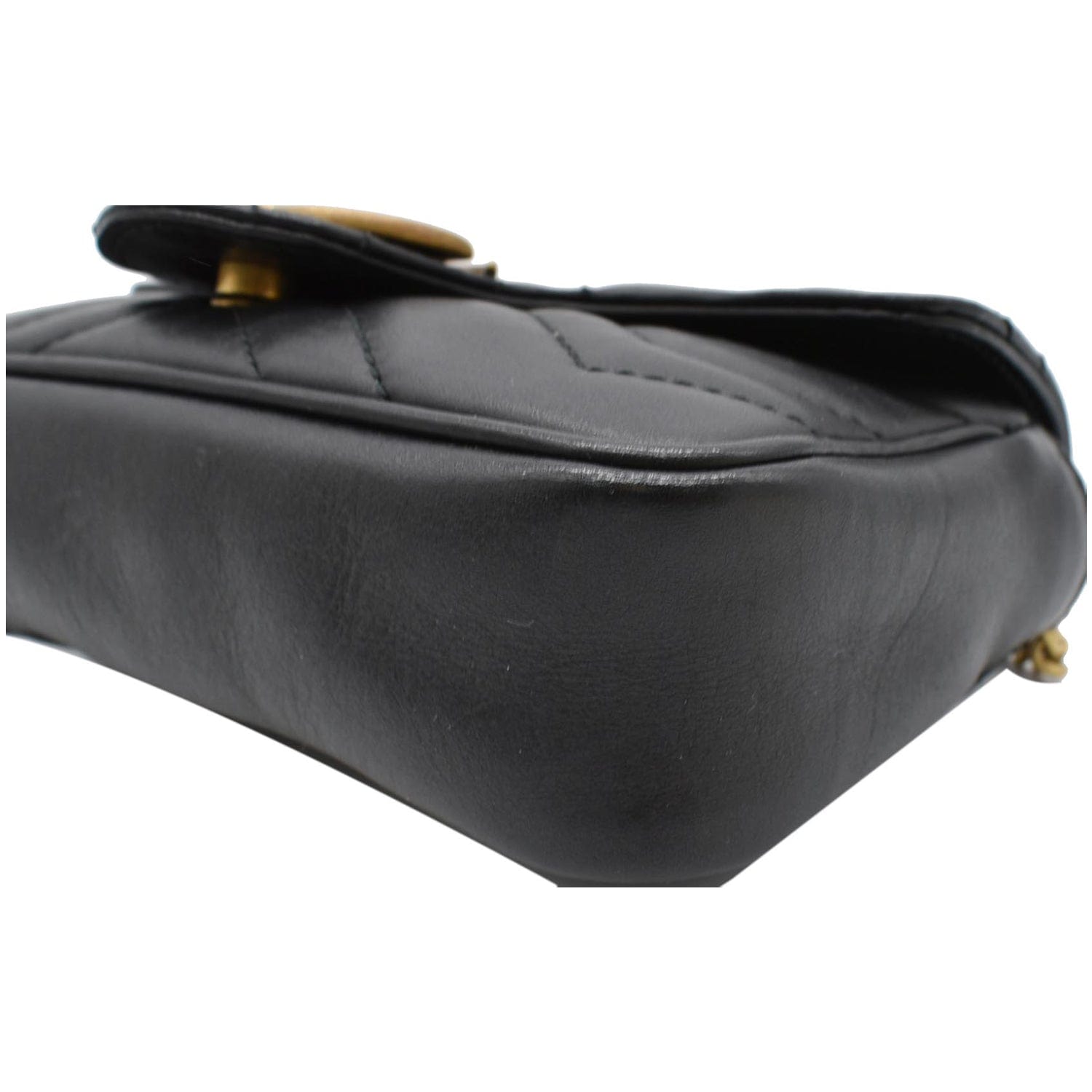 GUCCI GG Marmont Matelasse Leather Super Mini Crossbody Bag Black