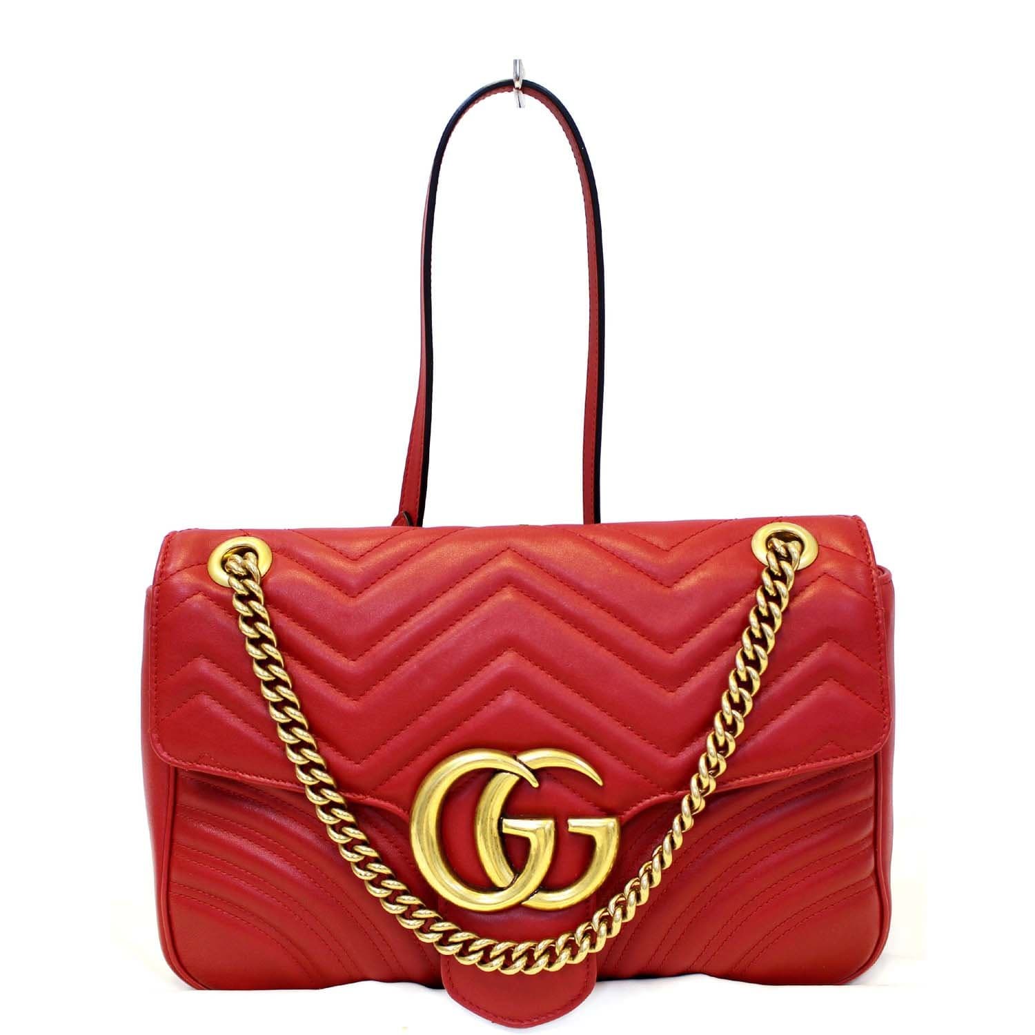 GUCCI GG Marmont Matelasse Red Leather Shoulder Bag-US