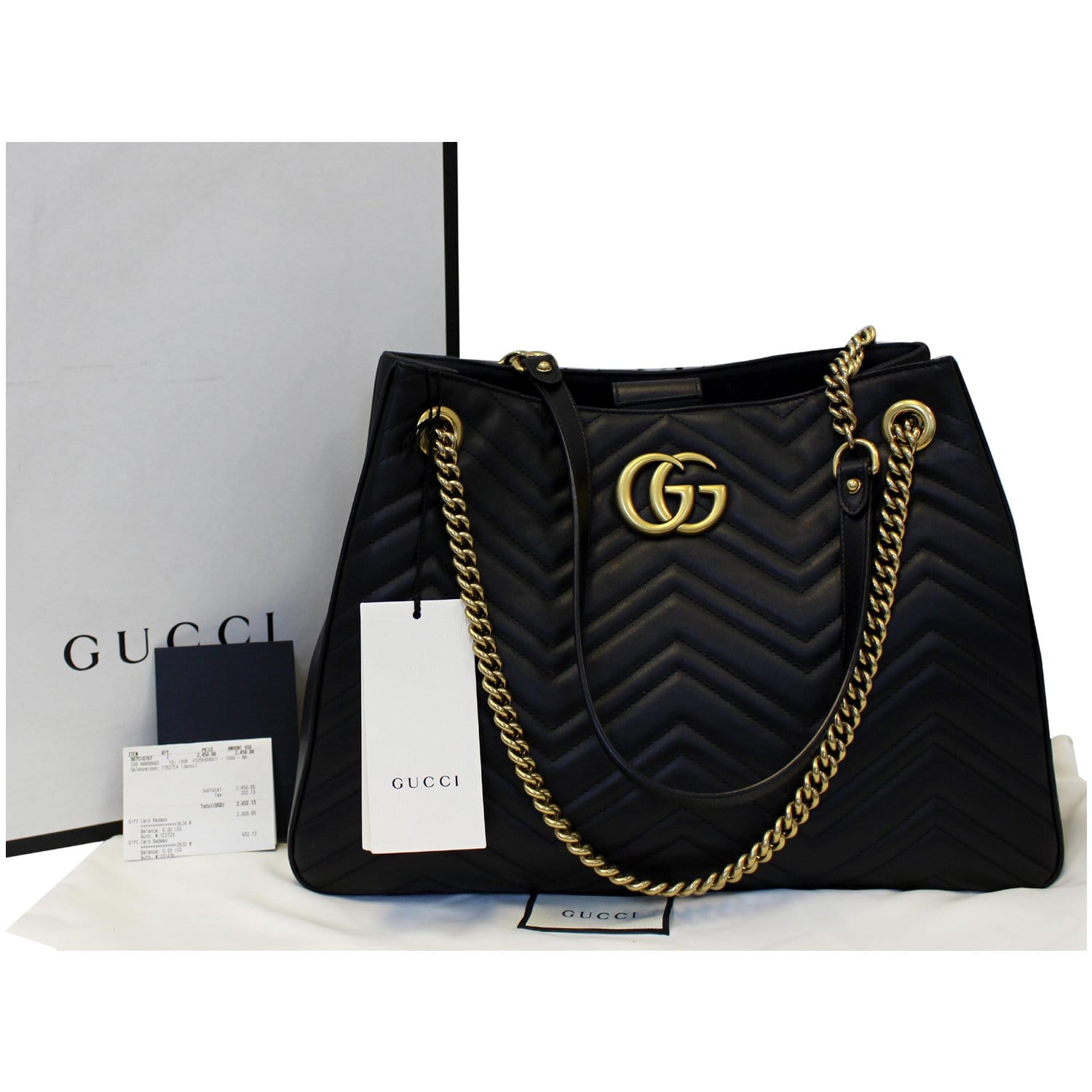 GUCCI GG Marmont Metelasse Medium Quilted Leather Shoulder Bag 453569 Black