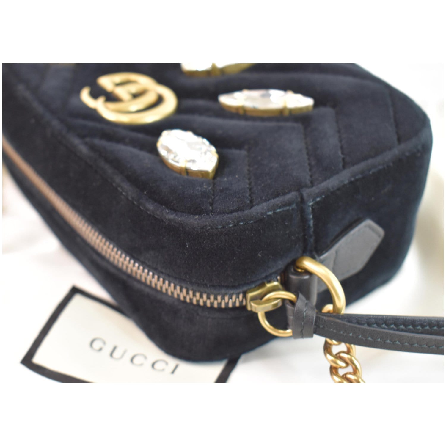 GUCCI GG Marmont Mini Marquise Crystal Velvet Crossbody Bag 448065