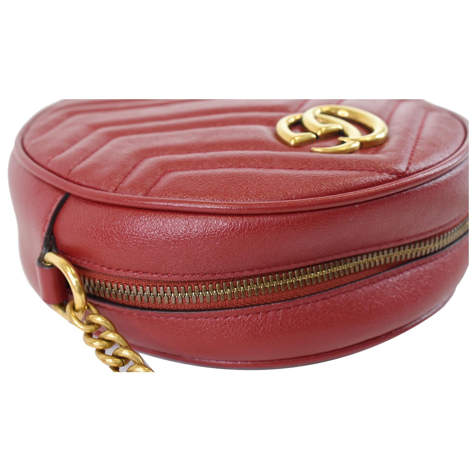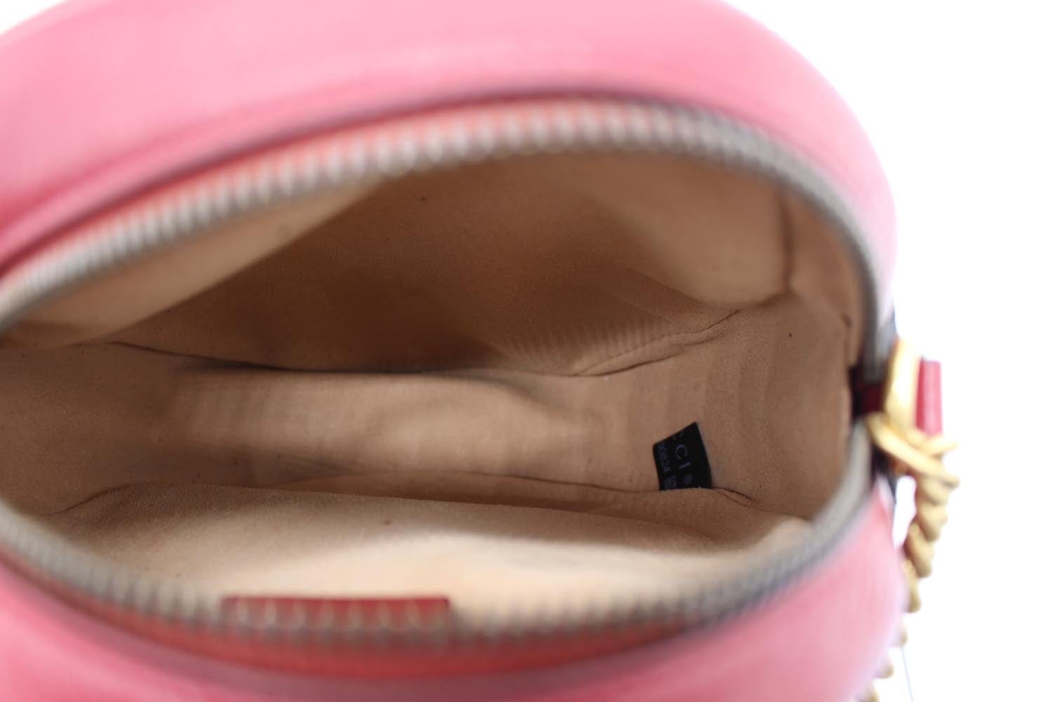 GUCCI GG Marmont Mini Round Leather Crossbody Bag Red 550154