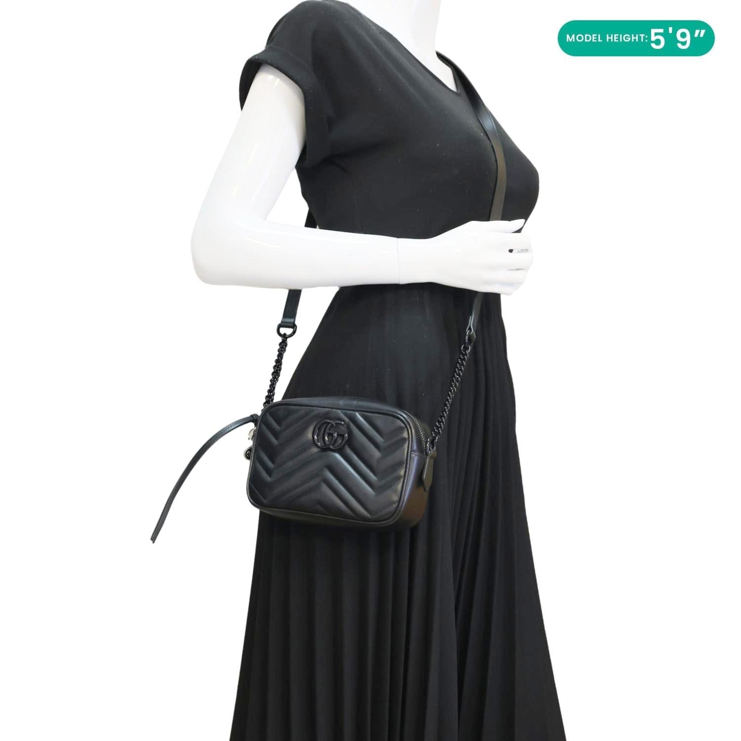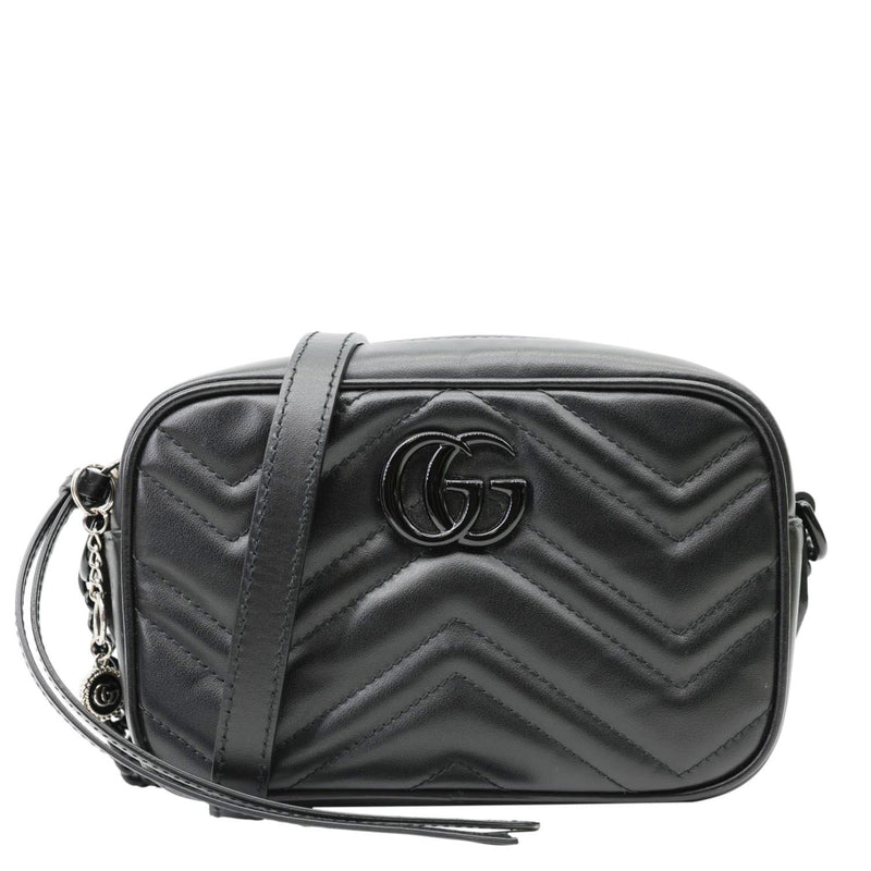 GUCCI GG Marmont Mini Matelasse Chevron Leather Camera Bag Black 634936