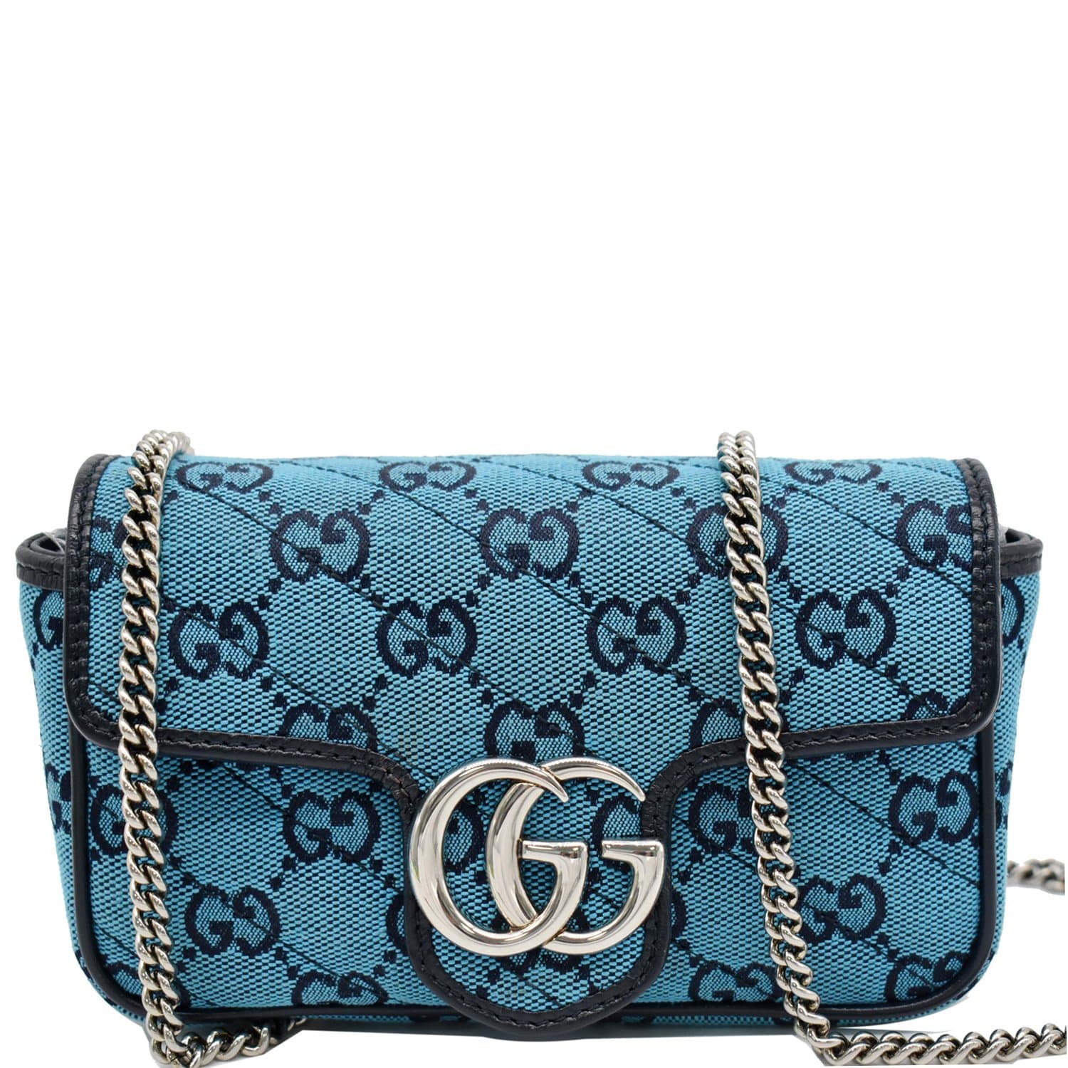 GUCCI GG Marmont Super Mini Matelasse Canvas Crossbody Bag Blue 476433