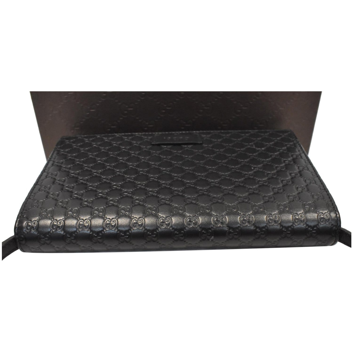 GUCCI GG Micro Guccissima Leather Crossbody Wallet Black 466507
