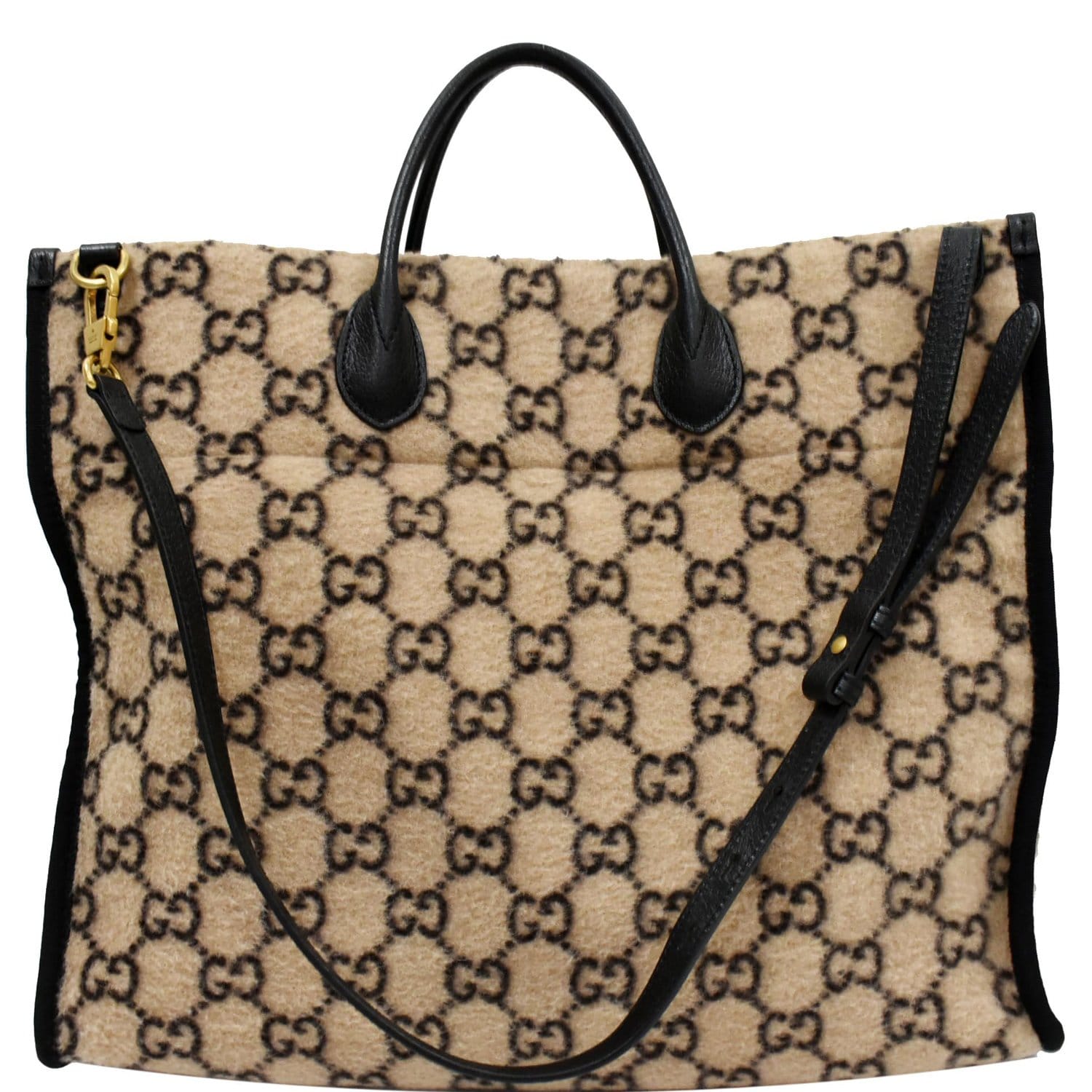 GG Monogram Wool Tote Shoulder Bag Beige 598169