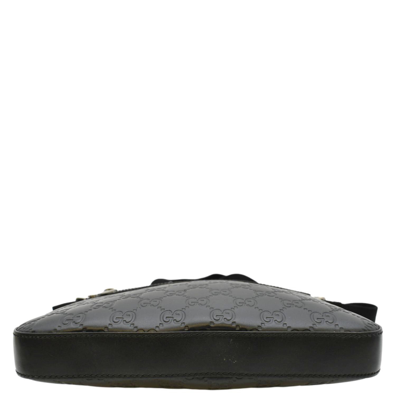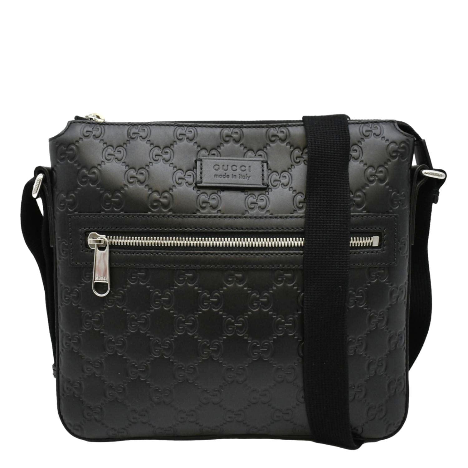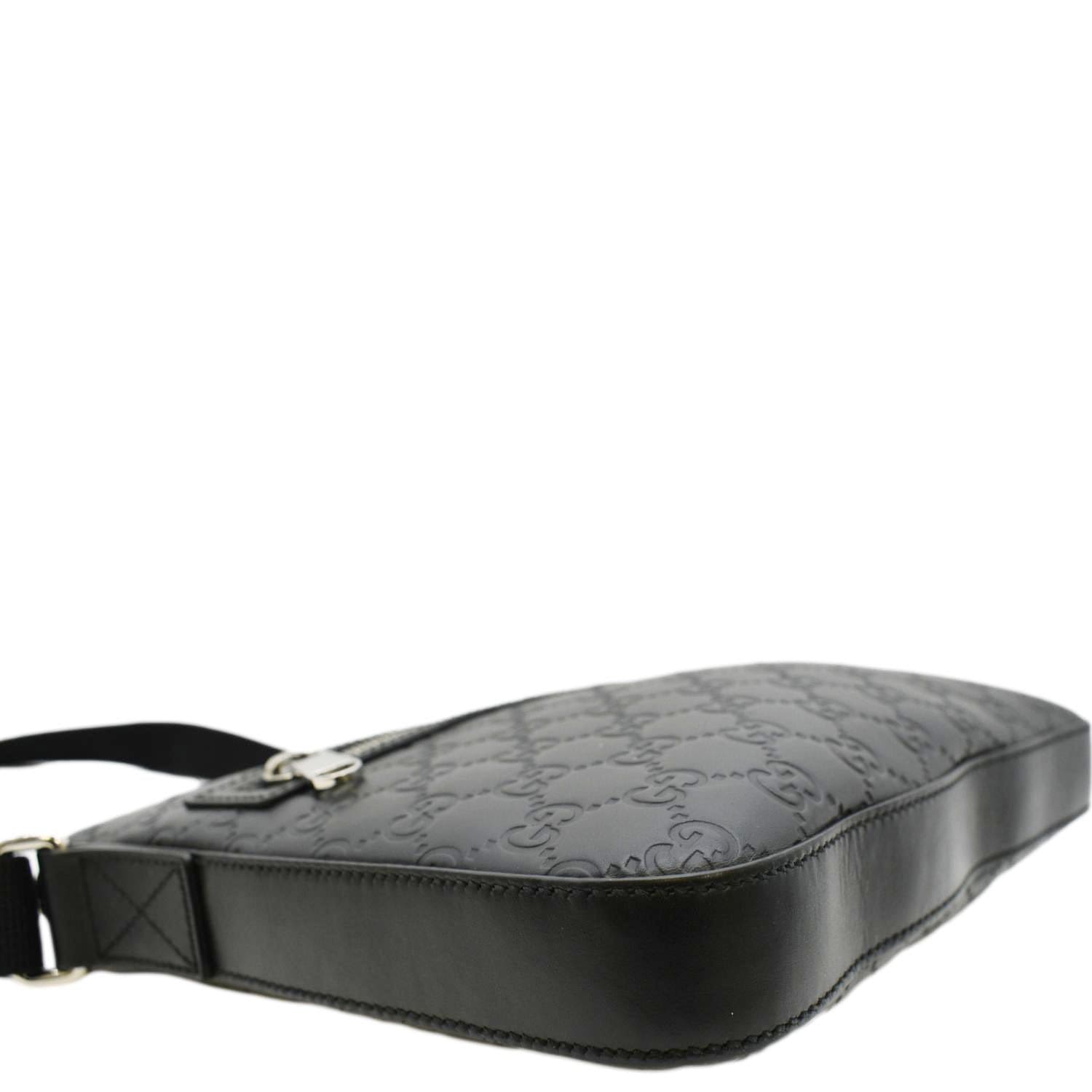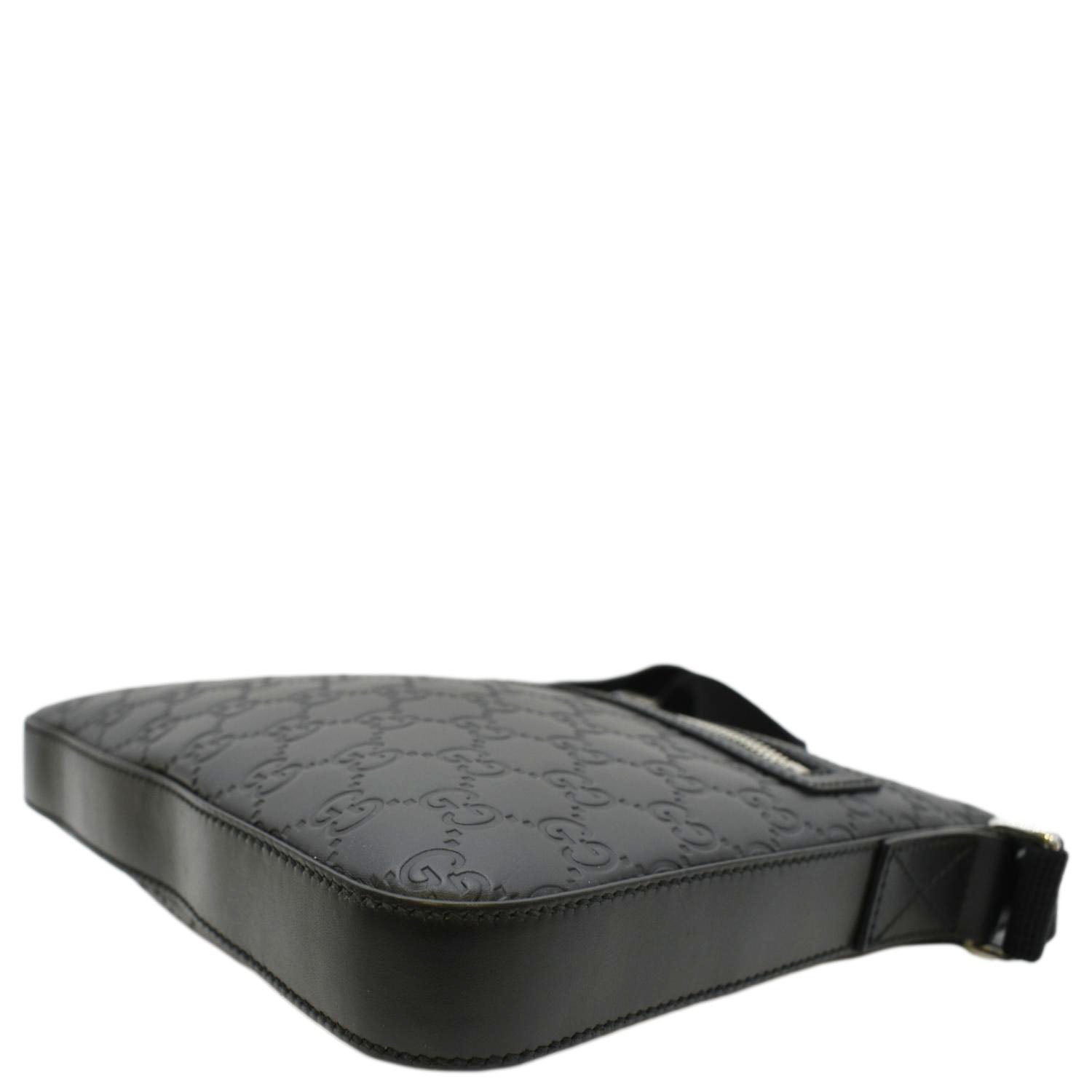 GUCCI GG Signature Leather Messenger Bag Black 406410