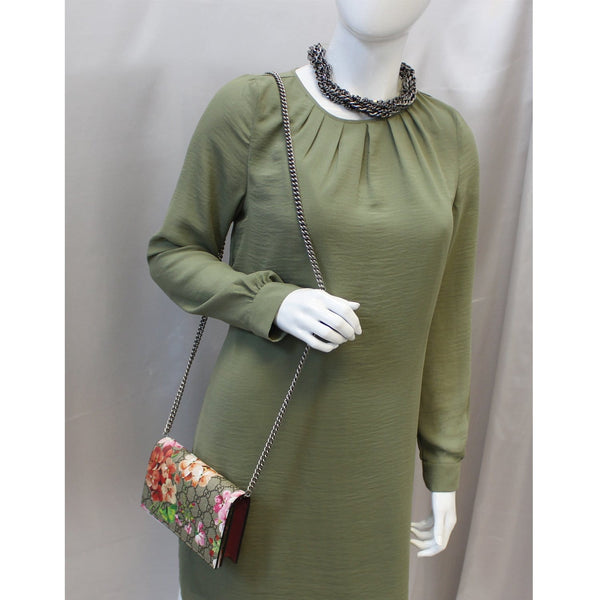 GG Supreme Monogram Blooms Chain Wallet Beige 402724
