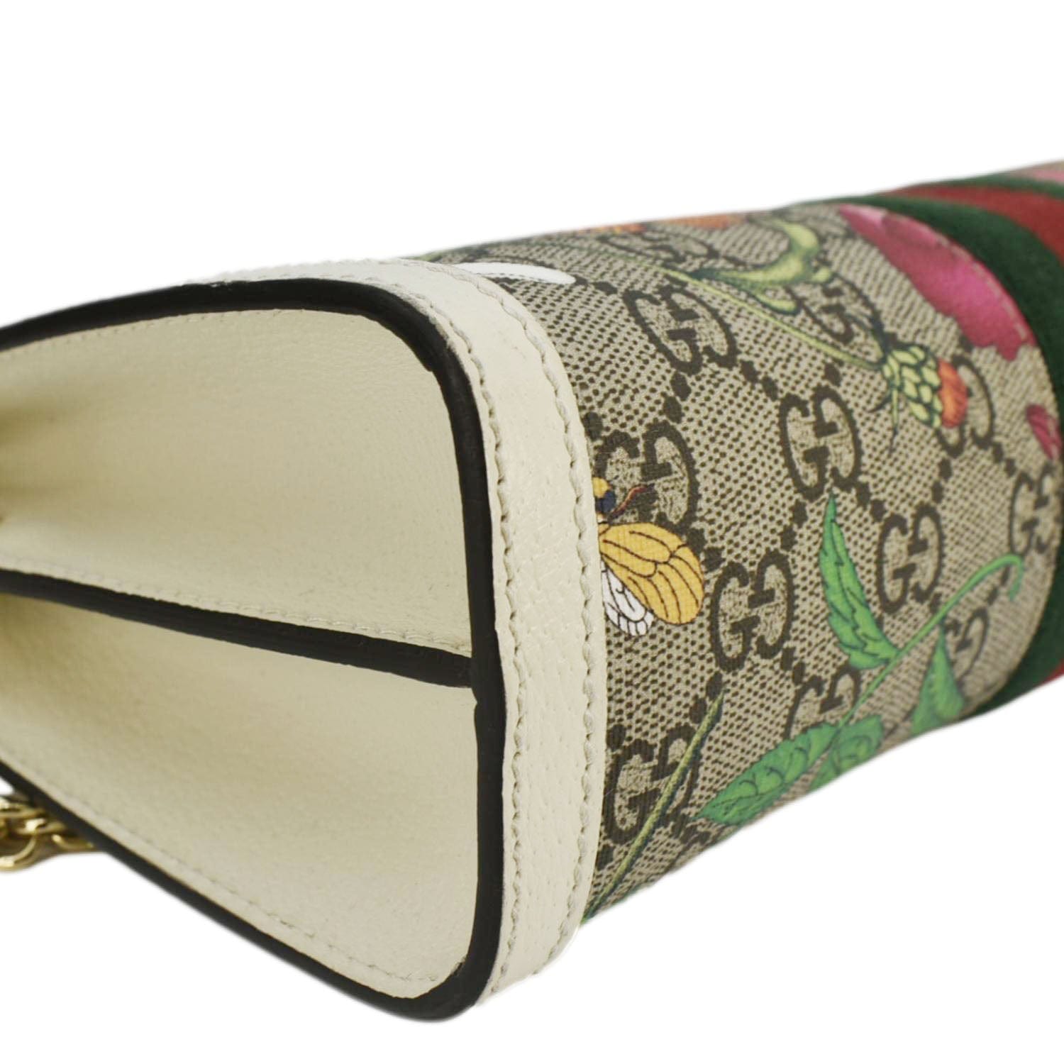 GUCCI Ophidia Web Small GG Floral Canvas Chain Shoulder Bag Beige 503877