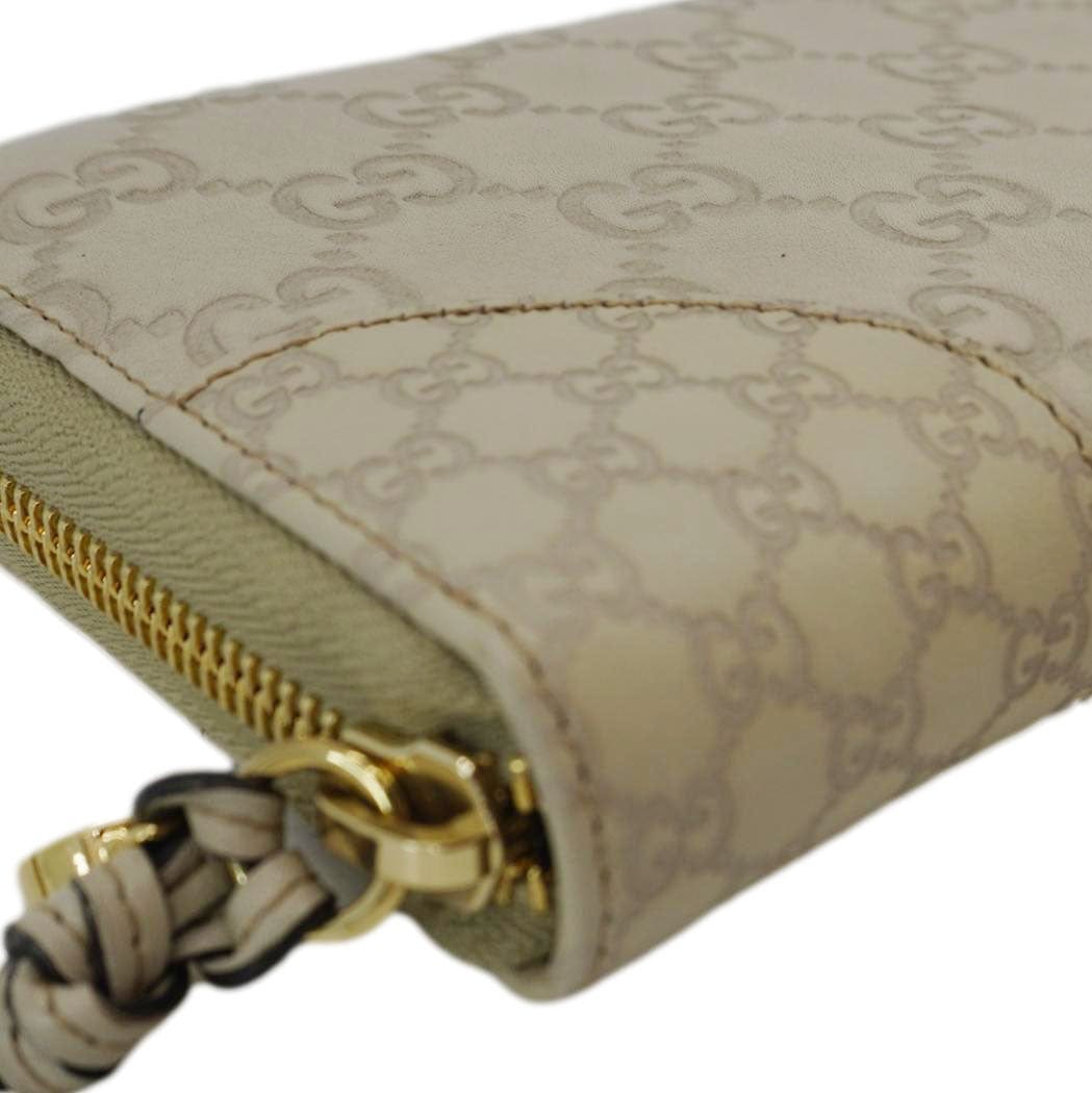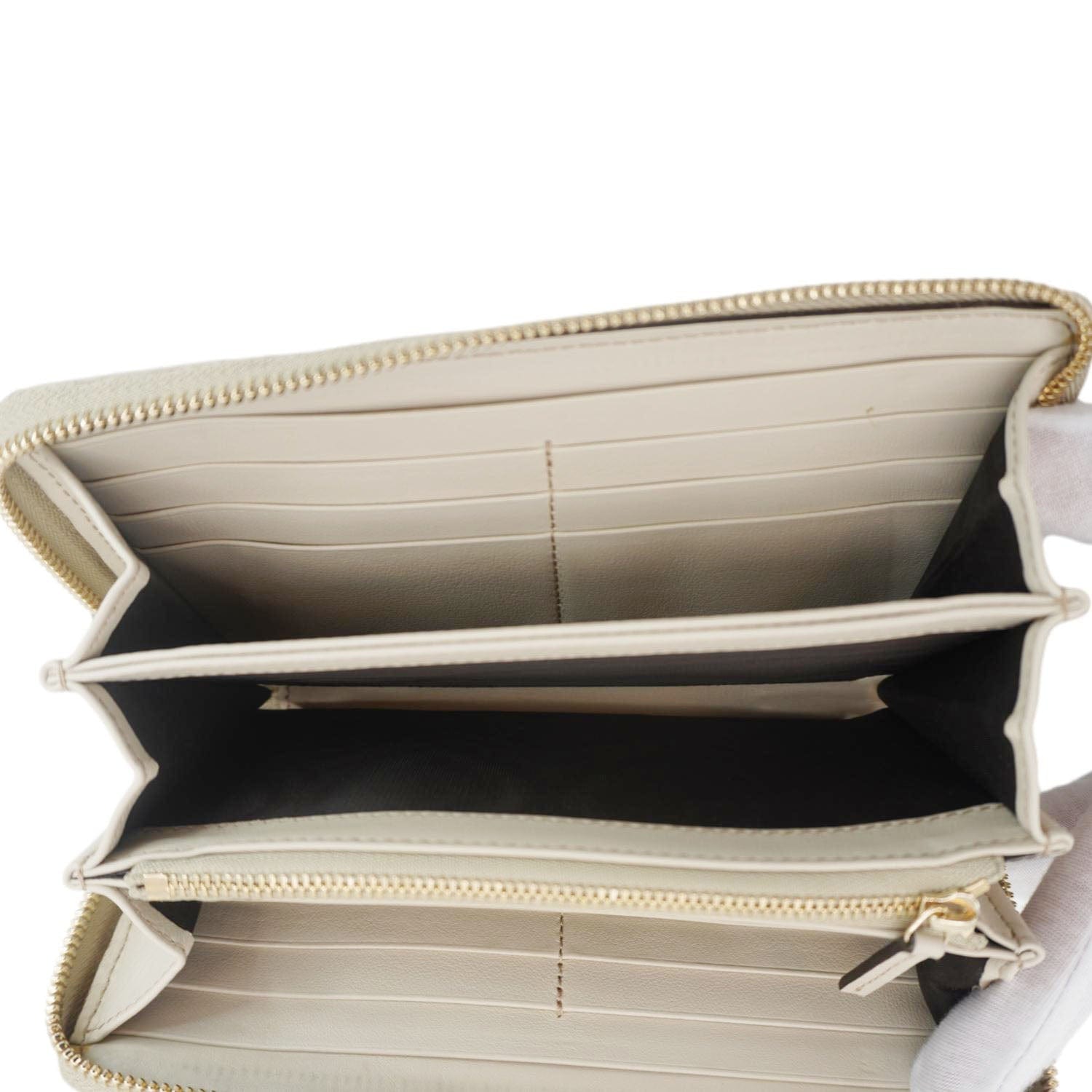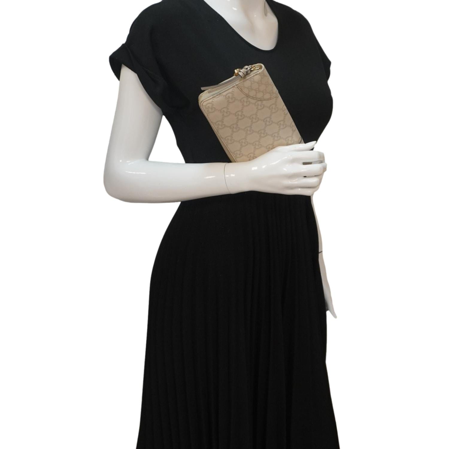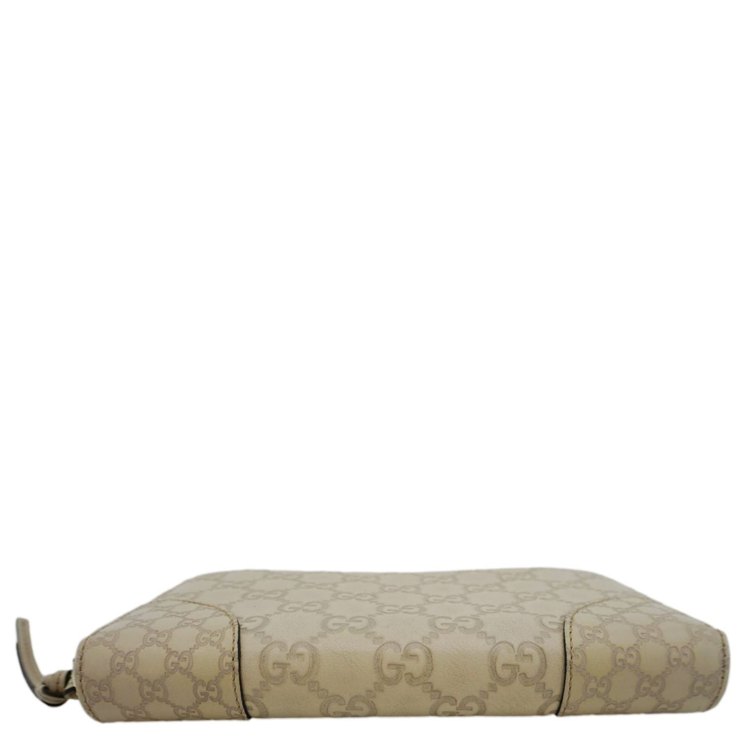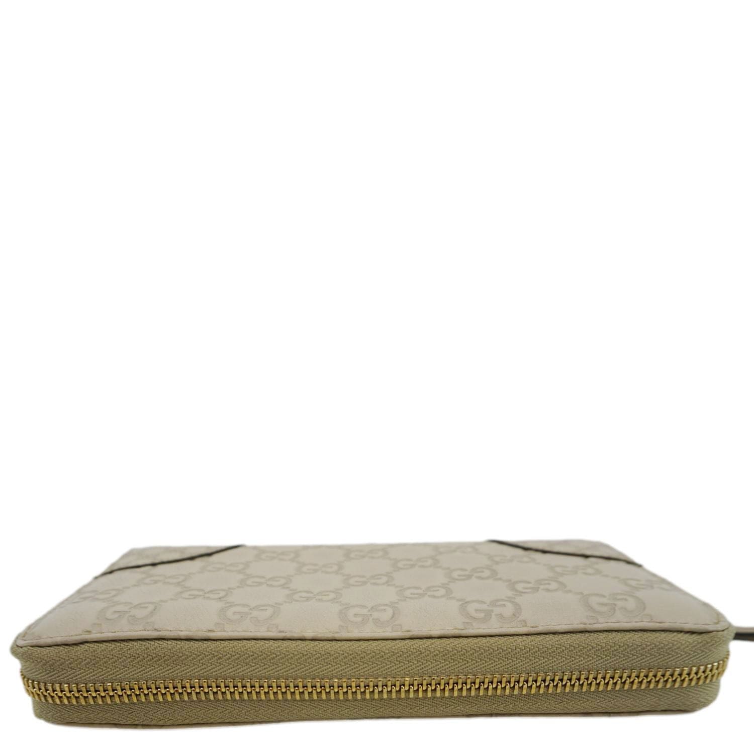 The Gucci GG Canvas Zippy Wallet in white is a chic and functional accessory. Crafted from GG canvas with leather accents, it features a secure zip-around closure and multiple compartments for organized storage, blending elegance with practicality.