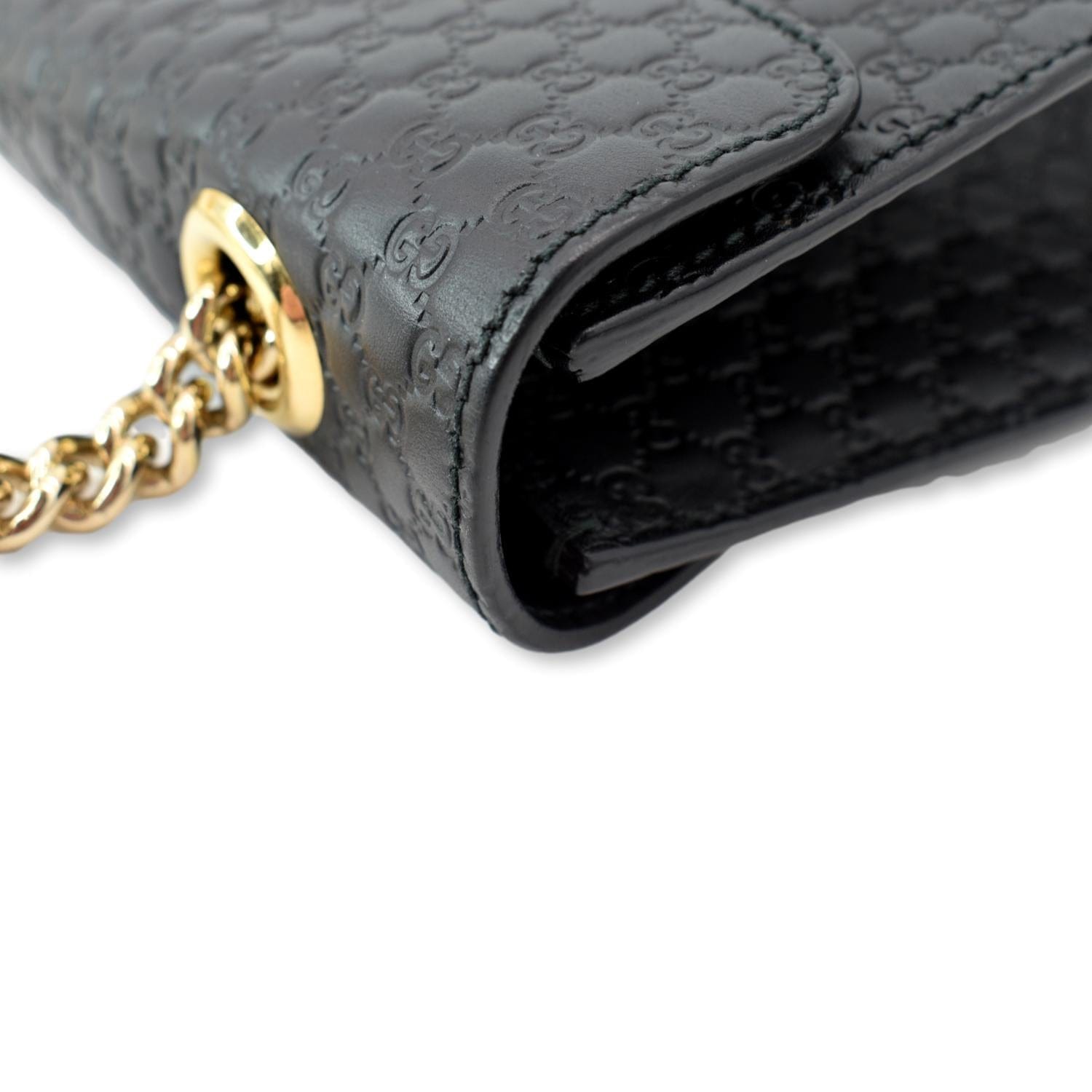 GUCCI Emily Medium GG Guccissima Leather Chain Shoulder Bag 449635 Black