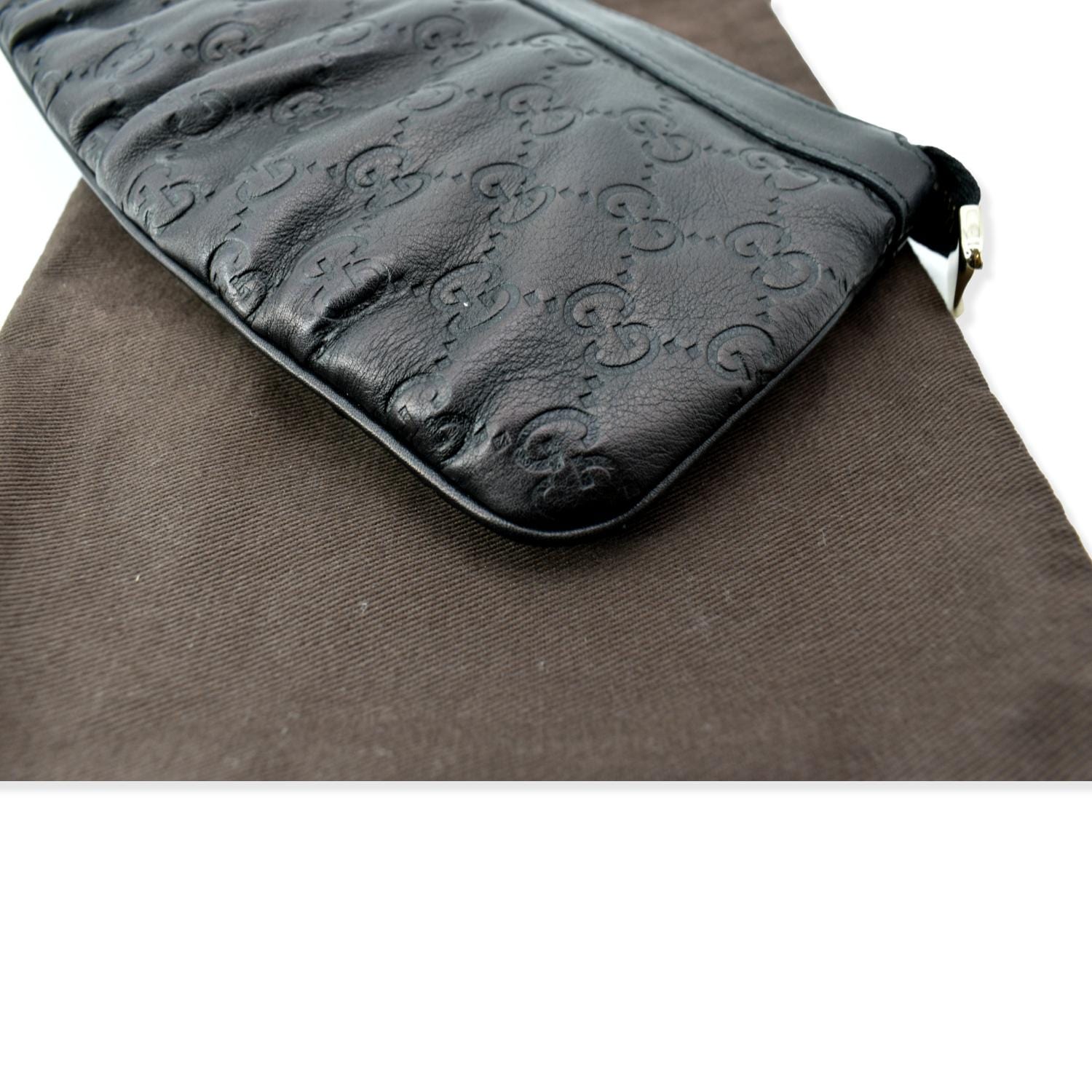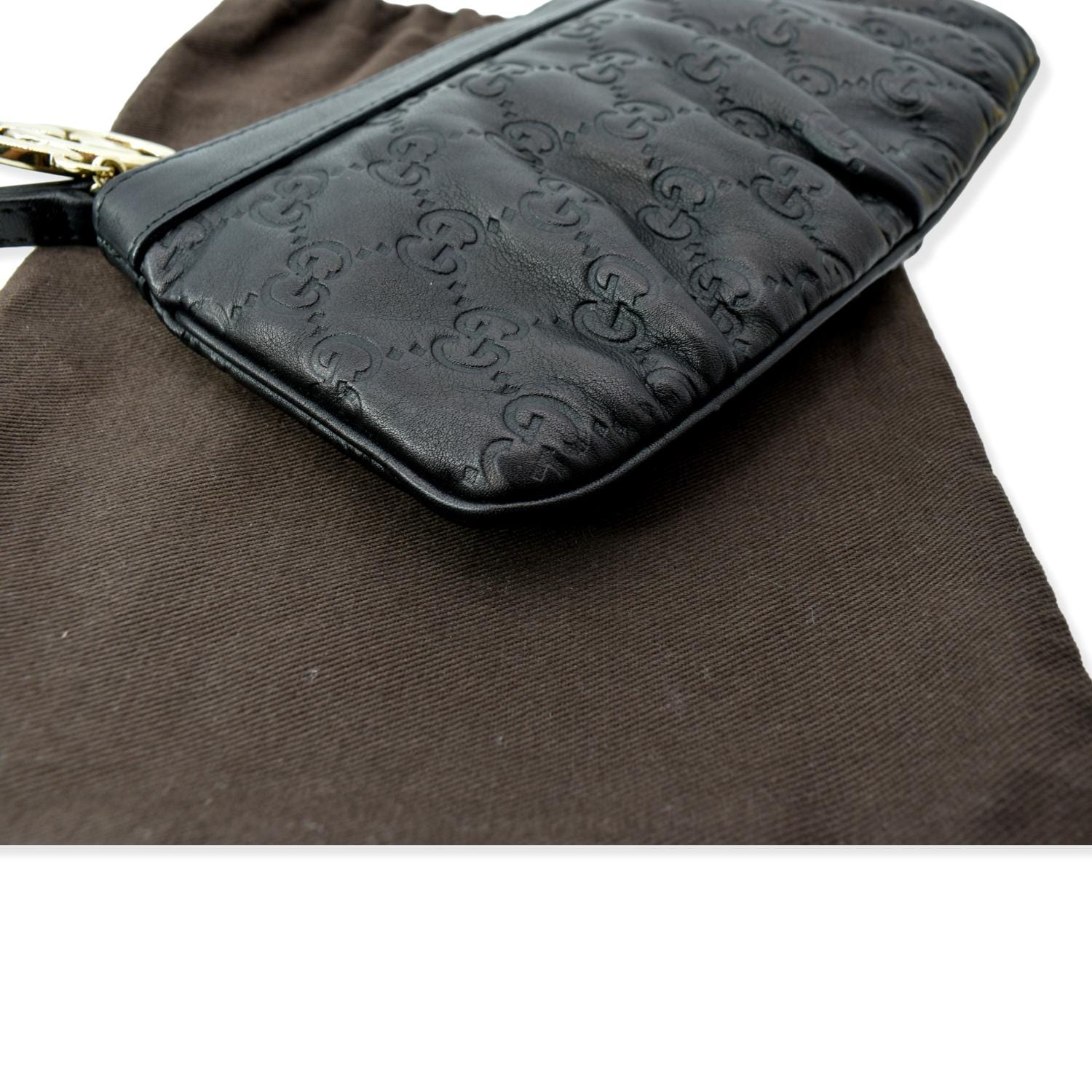 GUCCI Guccissima Leather GG Wristlet Pochette Black 212203