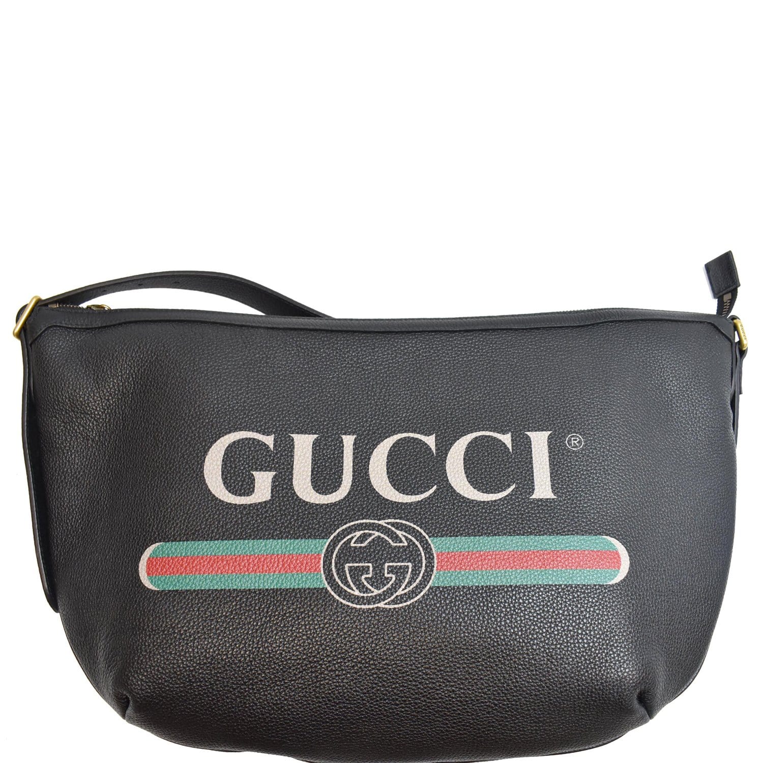 Gucci Half Moon Logo Calfskin Leather Hobo Shoulder Bag Black