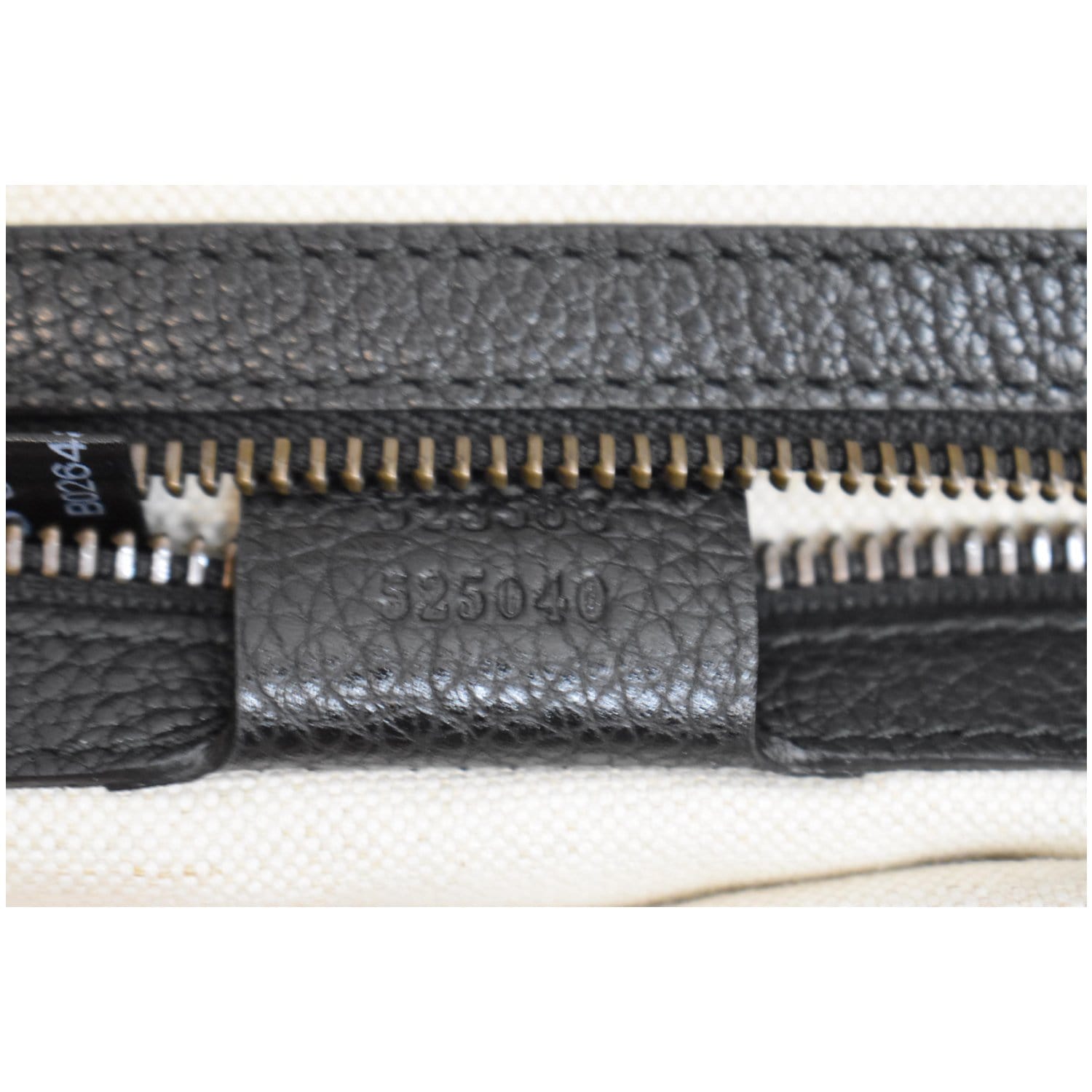 GUCCI Half Moon Logo Calfskin Leather Hobo Shoulder Bag Black 523588