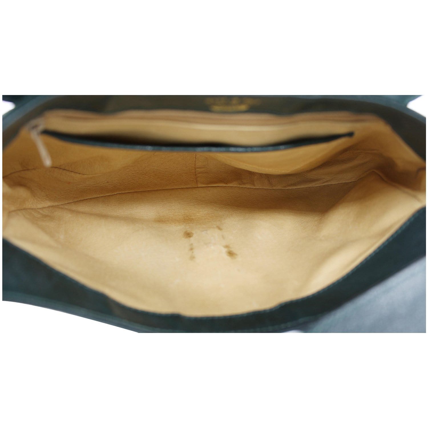 Visible Scratches, rubbed corners, leather tanning darkening. inside stains |