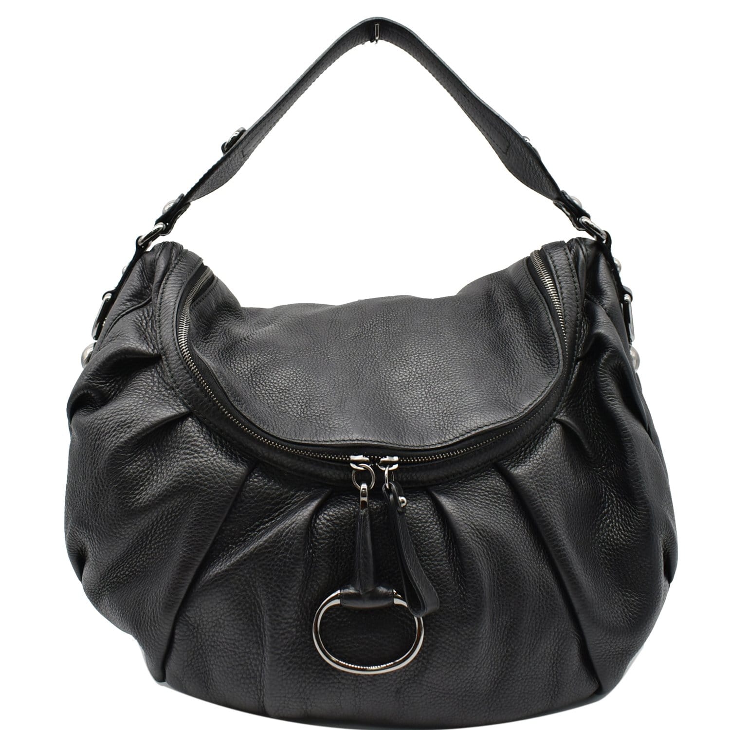 GUCCI Icon Bit Medium Pebbled Leather Shoulder Bag Black 228584