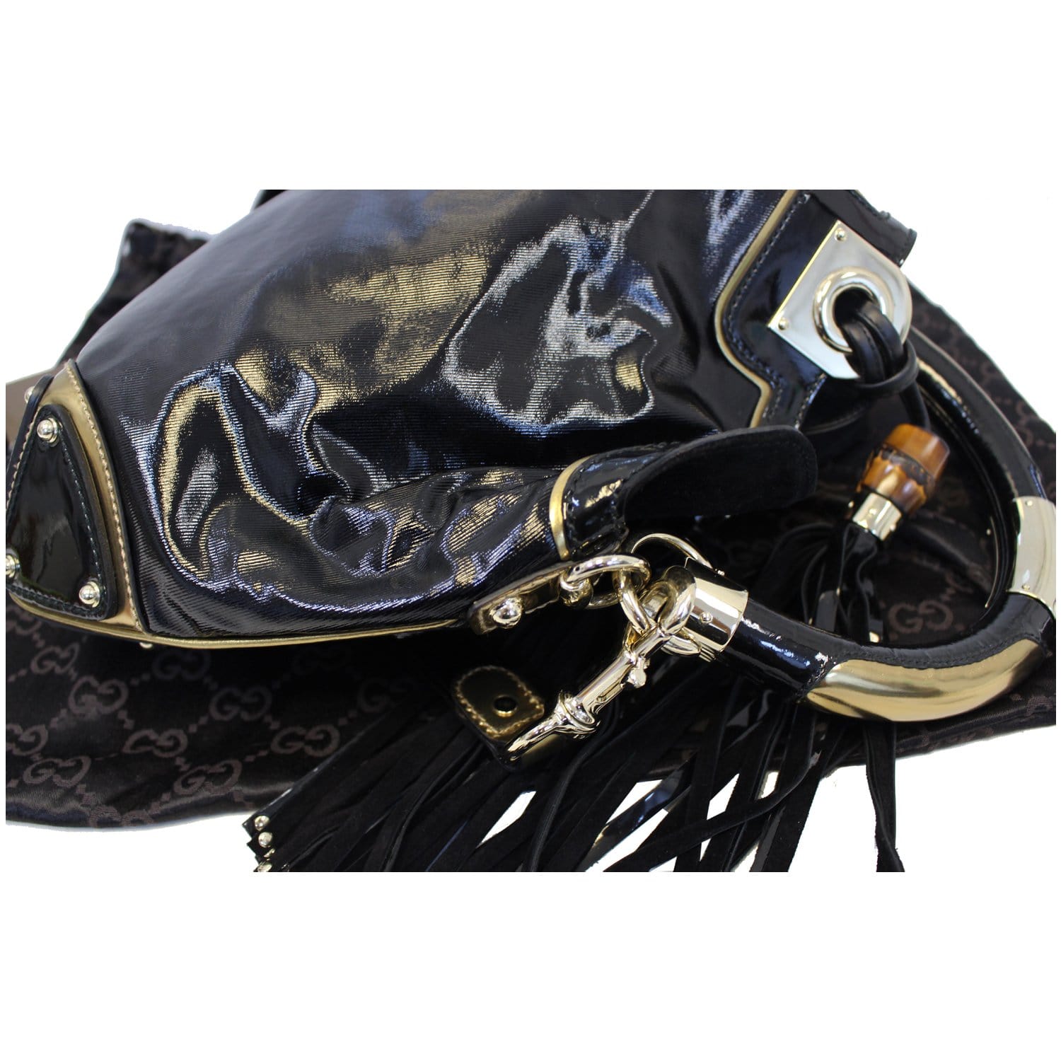 GUCCI Indy Babouska Leather Top Handle Shoulder Bag Black 185566