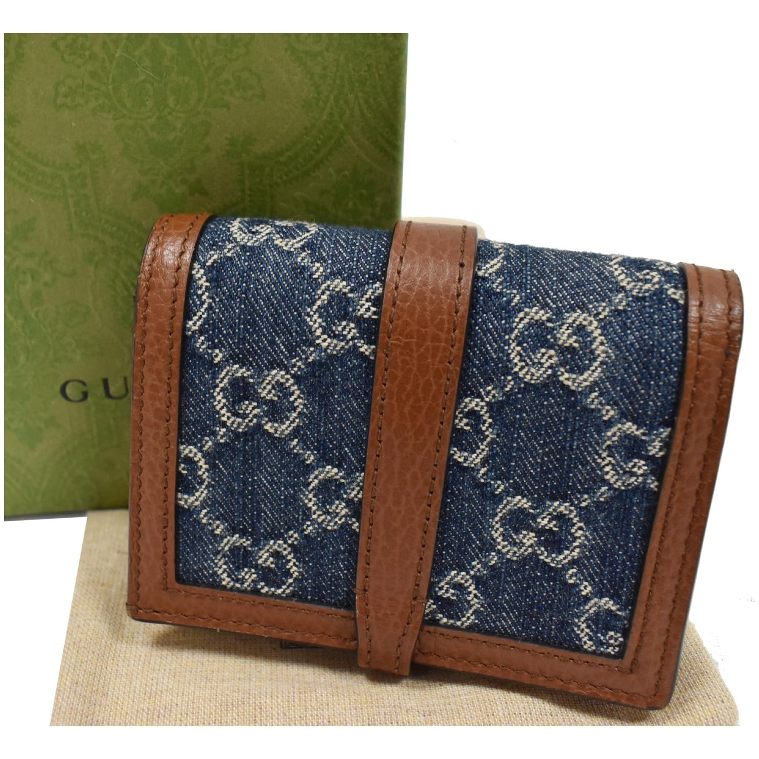 GUCCI Jackie 1961 GG Jacquard Denim Card Case Wallet Dark Blue