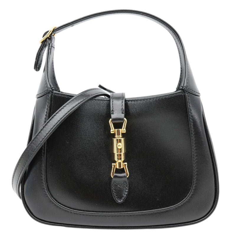 GUCCI Jackie Mini 1961 in smooth black leather features the iconic piston lock and curved silhouette. Compact and timeless, it delivers classic elegance with a chic shoulder carry.