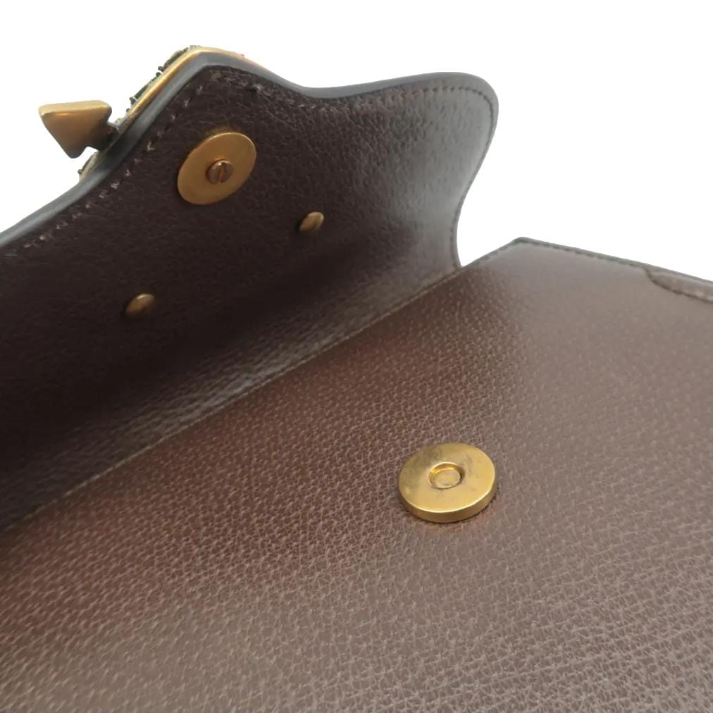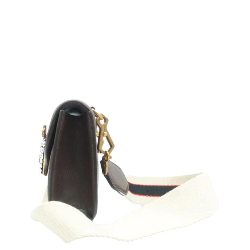 GUCCI Jeweled Heart Leather Totem Crossbody Bag Brown 500756