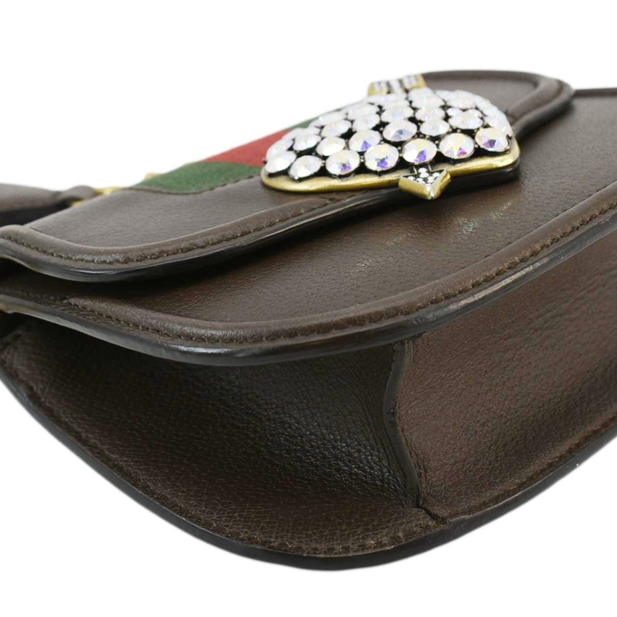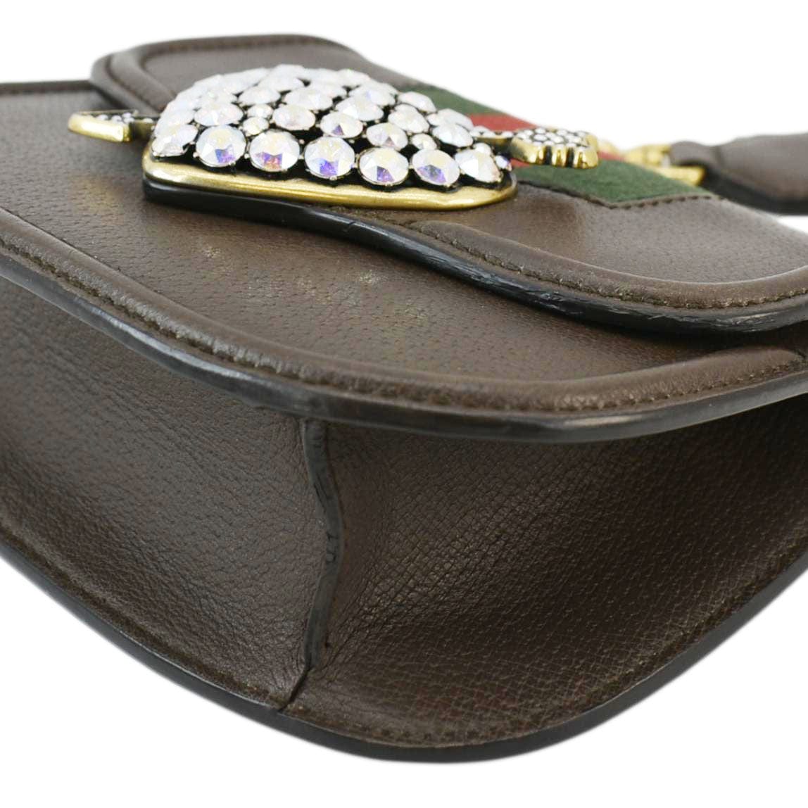 GUCCI Jeweled Heart Leather Totem Crossbody Bag Brown 500756