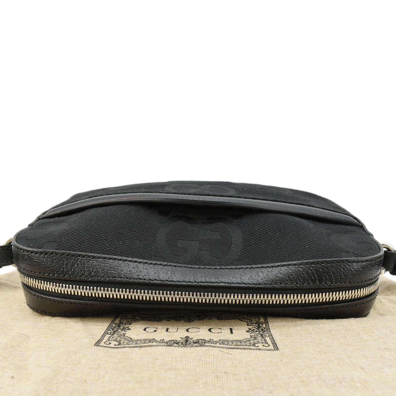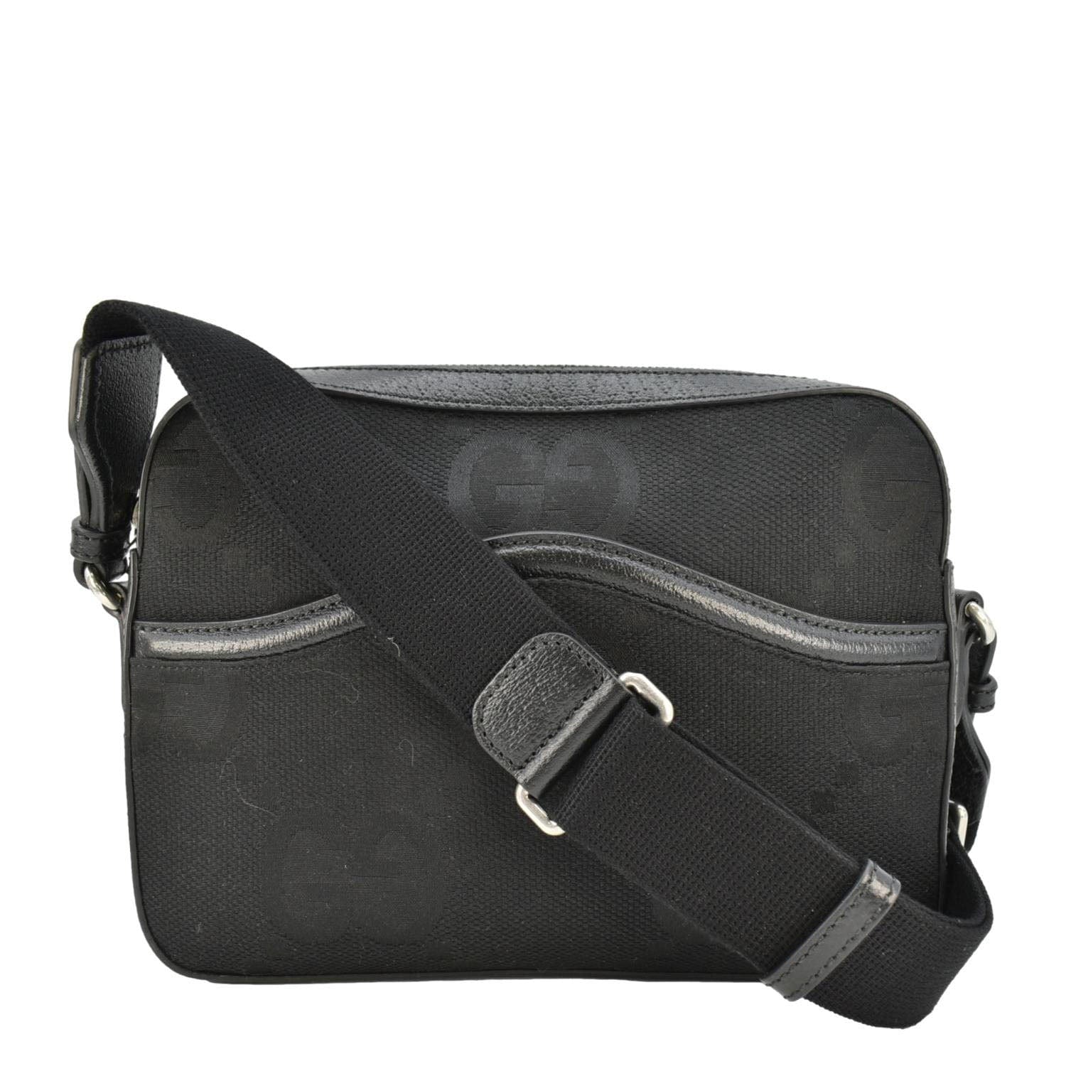 The GUCCI Jumbo GG Canvas Messenger Bag in Black features the oversized GG logo on durable canvas, offering a bold yet classic design. Its spacious interior and adjustable strap make it a practical, stylish choice for daily use.