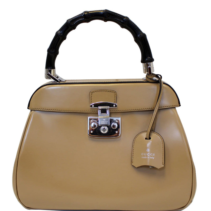 GUCCI Lady Lock Calfskin Bamboo Top Handle Bag Beige 331830