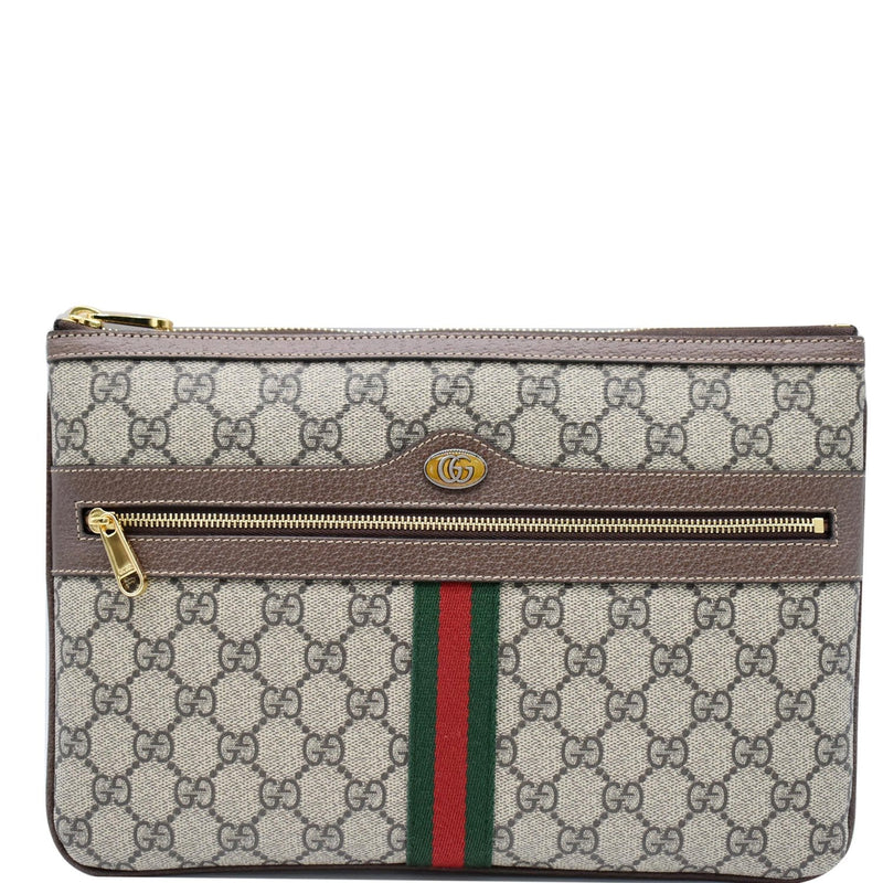 GUCCI Large Ophidia GG Supreme Monogram Leather Pouch Clutch Bag Beige 517551