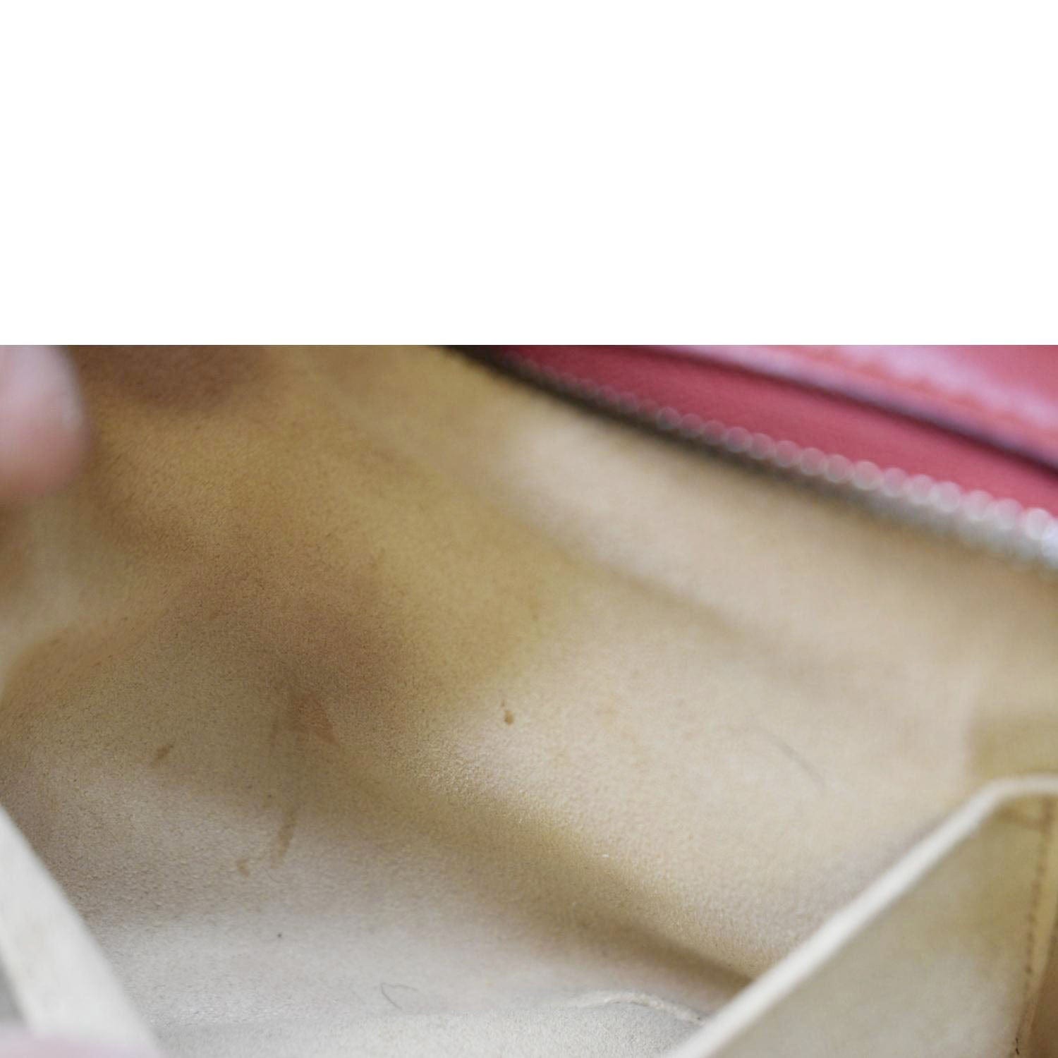 Good - The Item shows signs of use, including lightly rubbed corners and some inside dirt marks. Its gold color hardware has tarnish on it. This bag is without any unpleasant smell.