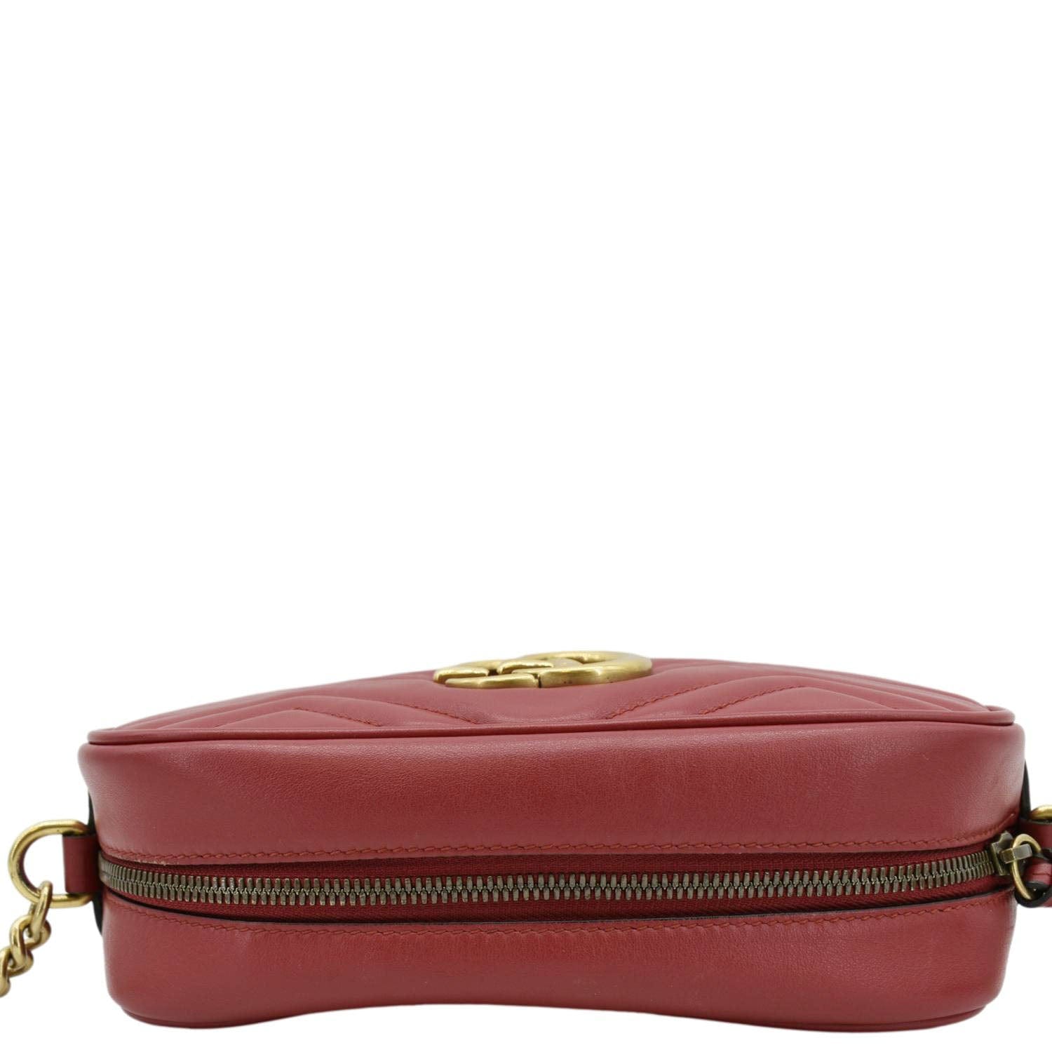GUCCI GG Marmont Small Matelasse Chevron Leather Crossbody Camera Bag Red 447632