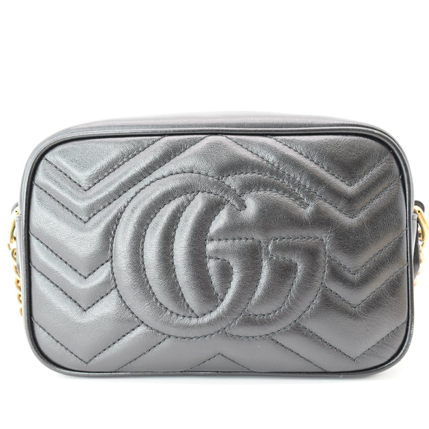 GUCCI GG Marmont Matelasse Mini Leather Crossbody Bag Black 448065