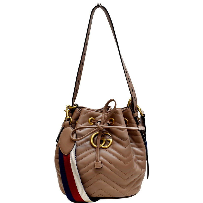 GUCCI Matelasse GG Marmont Quilted Bucket Shoulder Bag Nude 476674