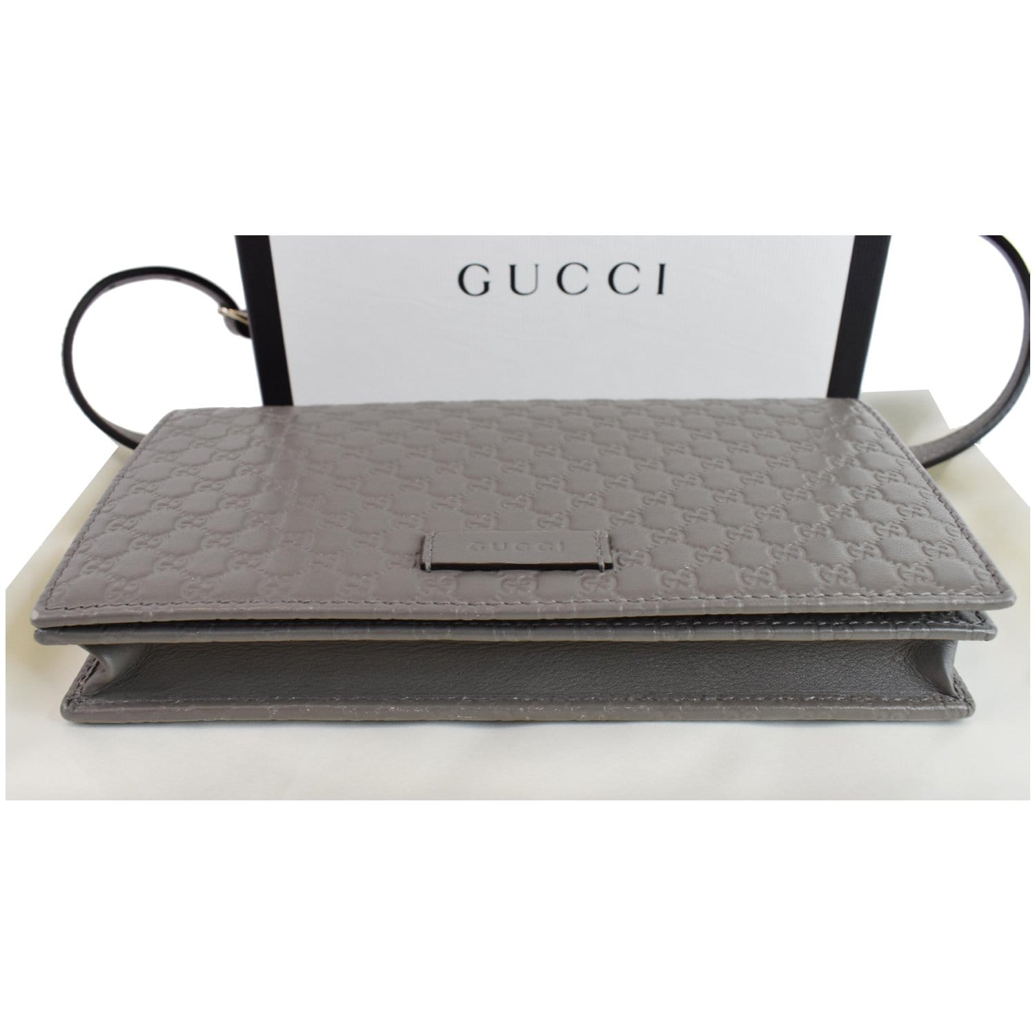 GUCCI Micro Guccissima Leather Crossbody Wallet Grey 466507