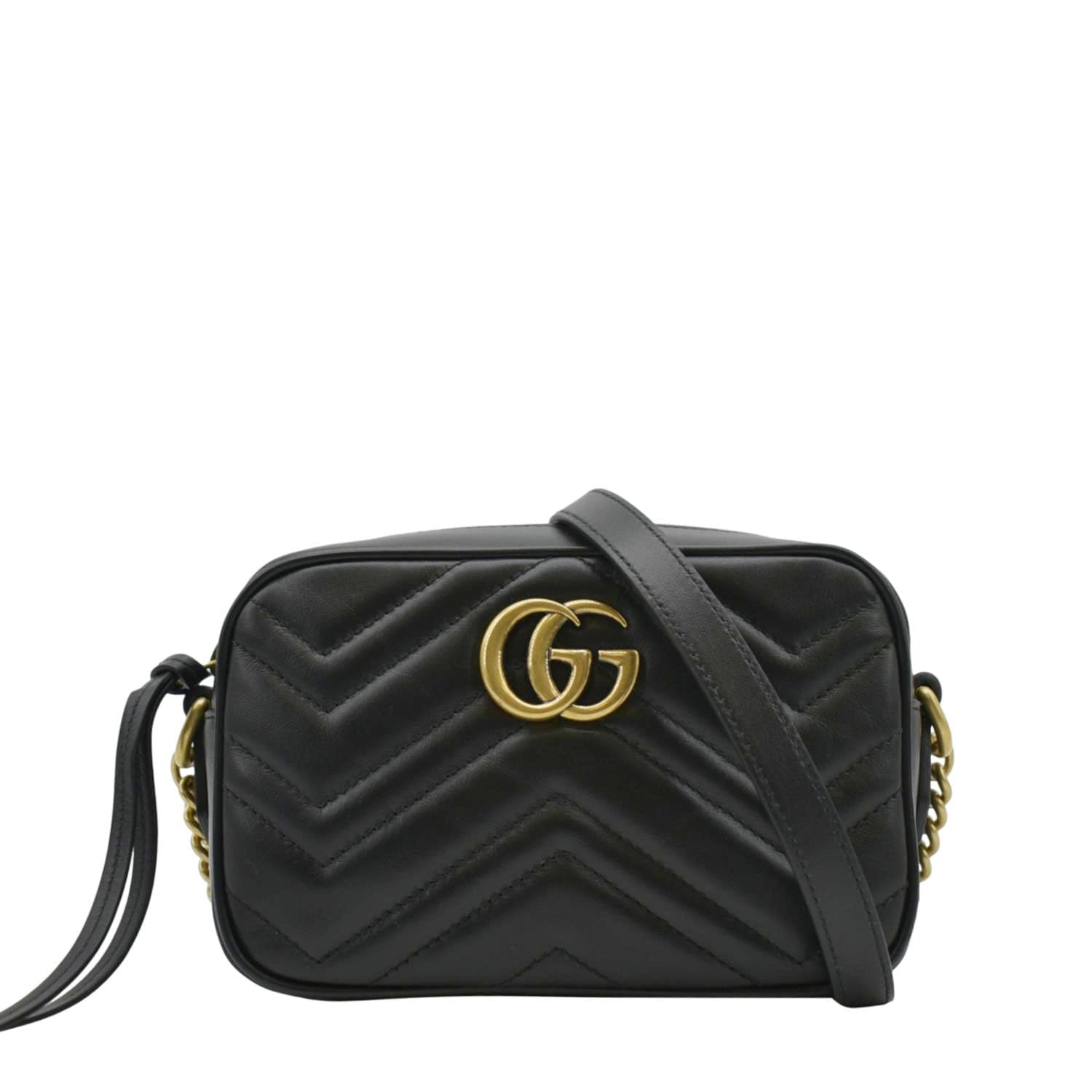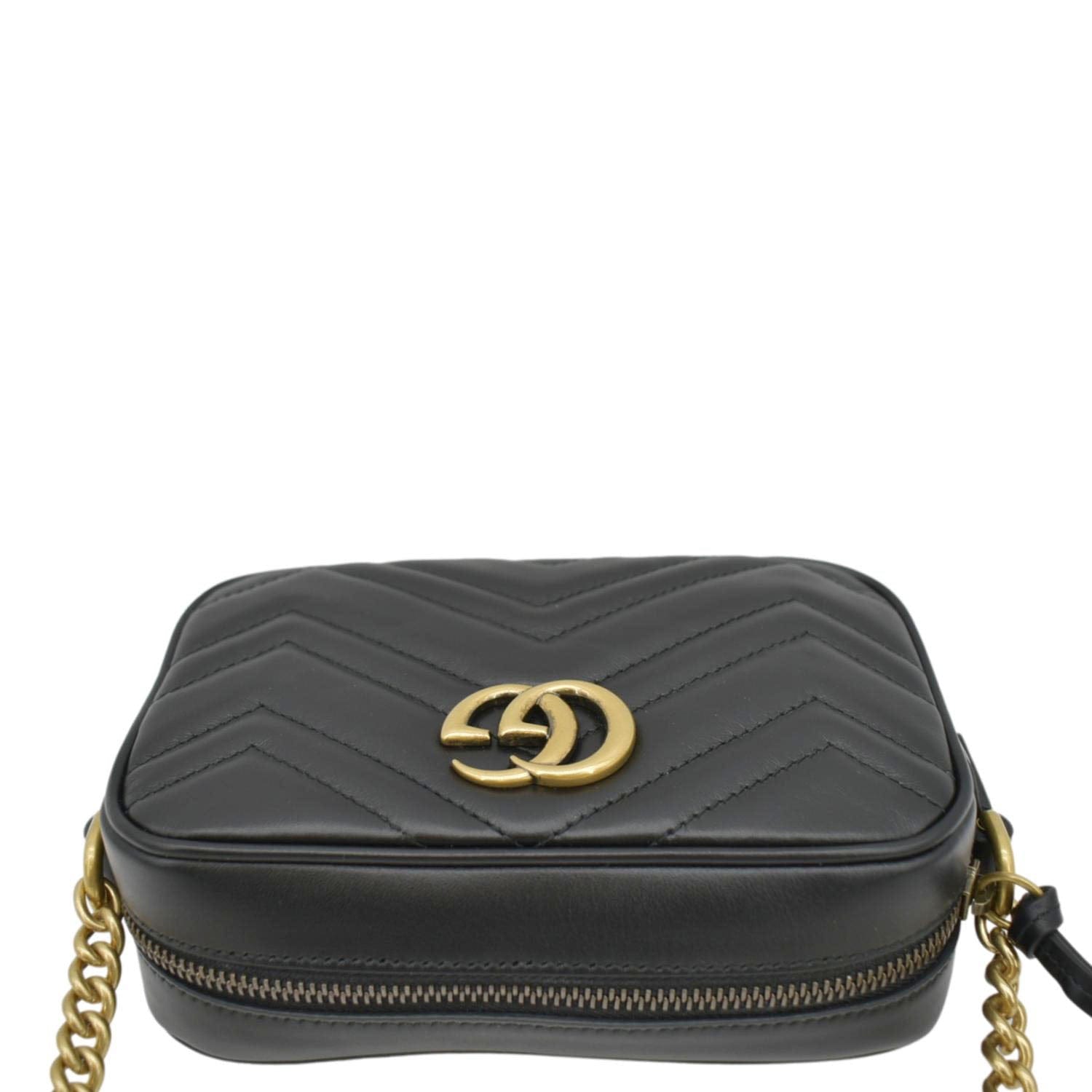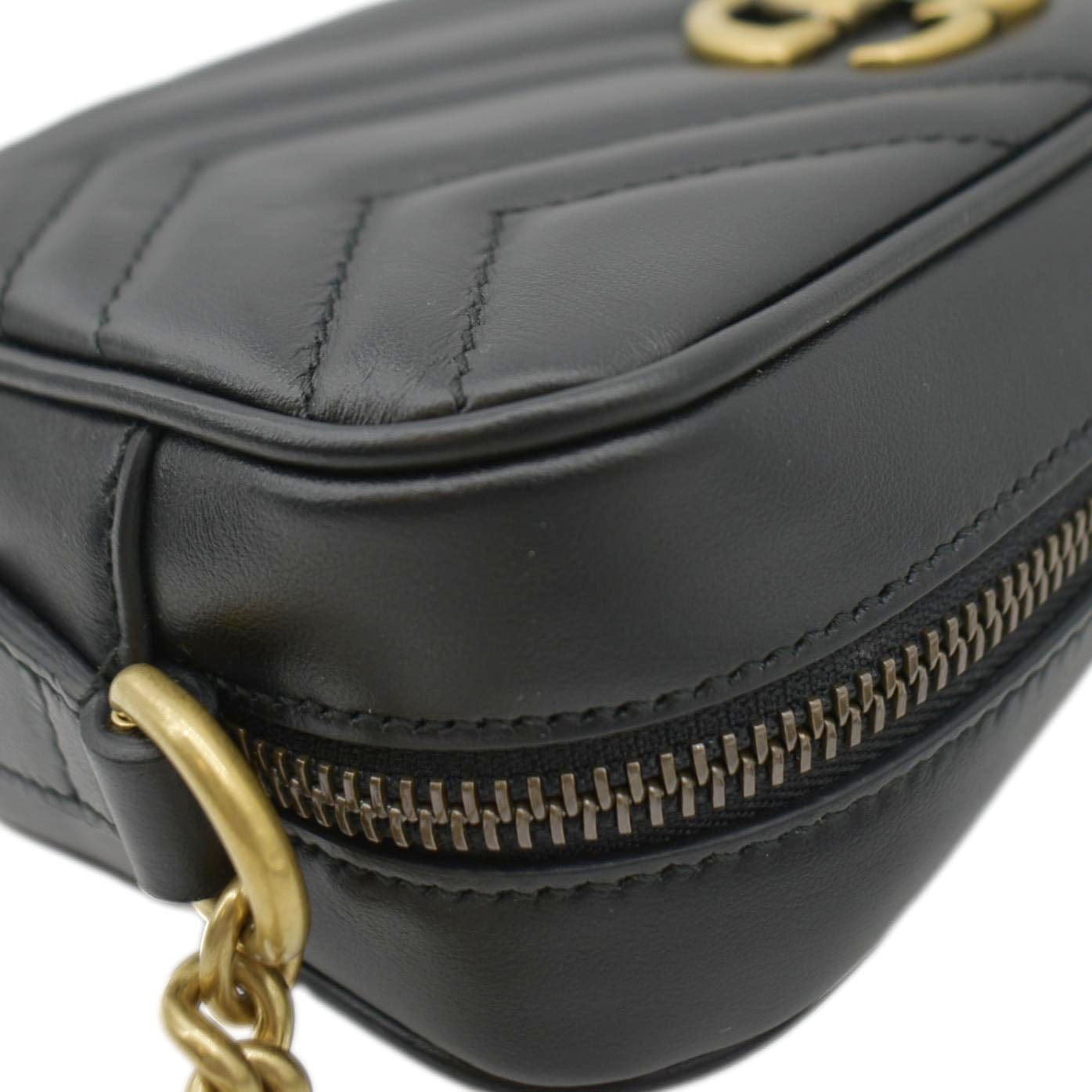 GUCCI GG Marmont Mini Matelasse Leather Chain Crossbody Bag Black 448065