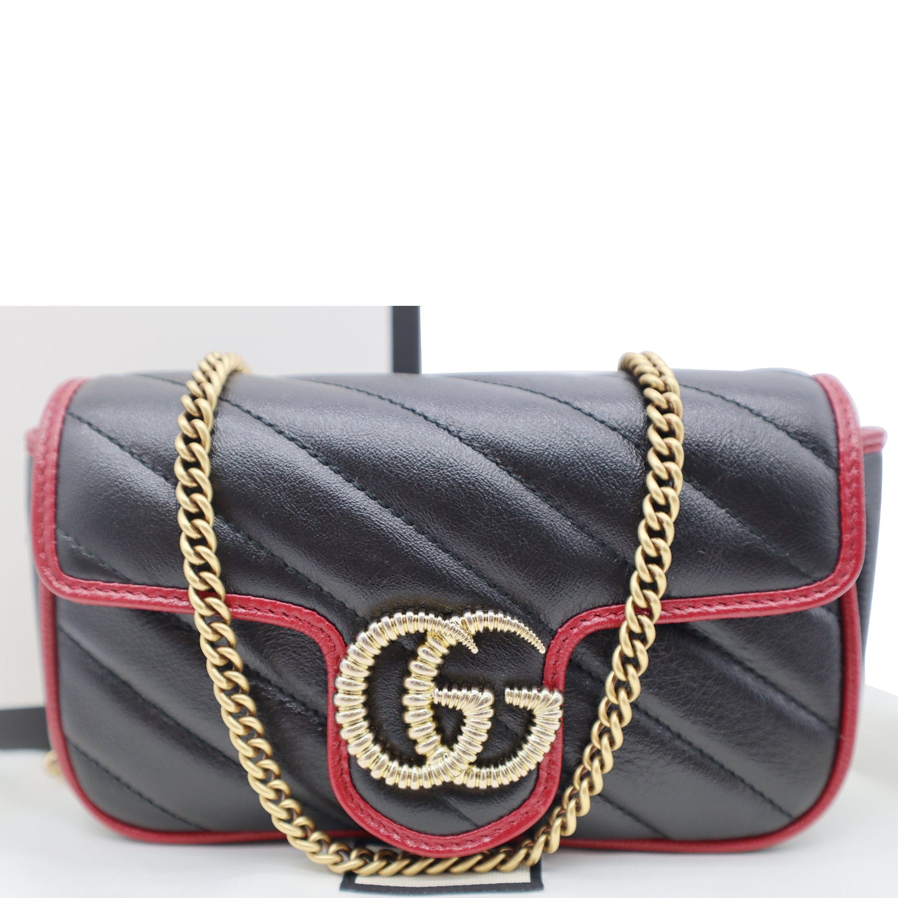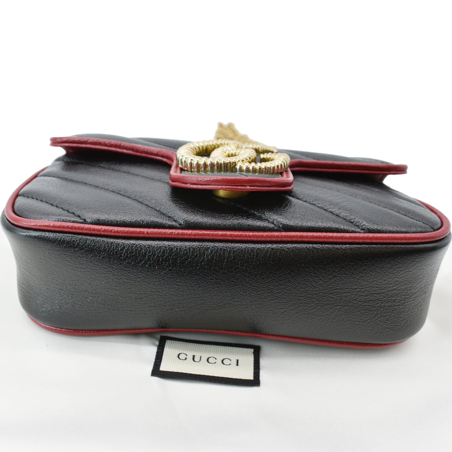 GUCCI GG Marmont Mini Matelassé Leather Shoulder Crossbody Bag Black/Cerise 574969