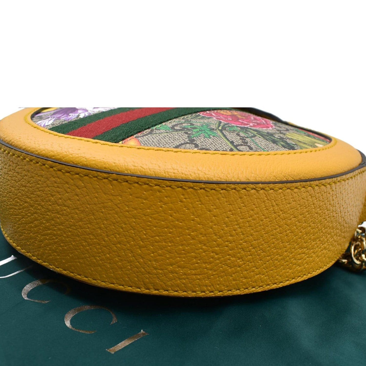 GUCCI Ophidia Mini Flora GG Round Supreme Monogram Web Crossbody Bag Yellow 550618