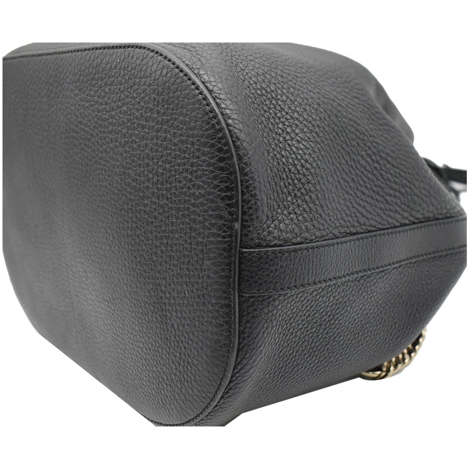 Miss Bamboo Medium Leather Bucket Shoulder Handbag Black 387613
