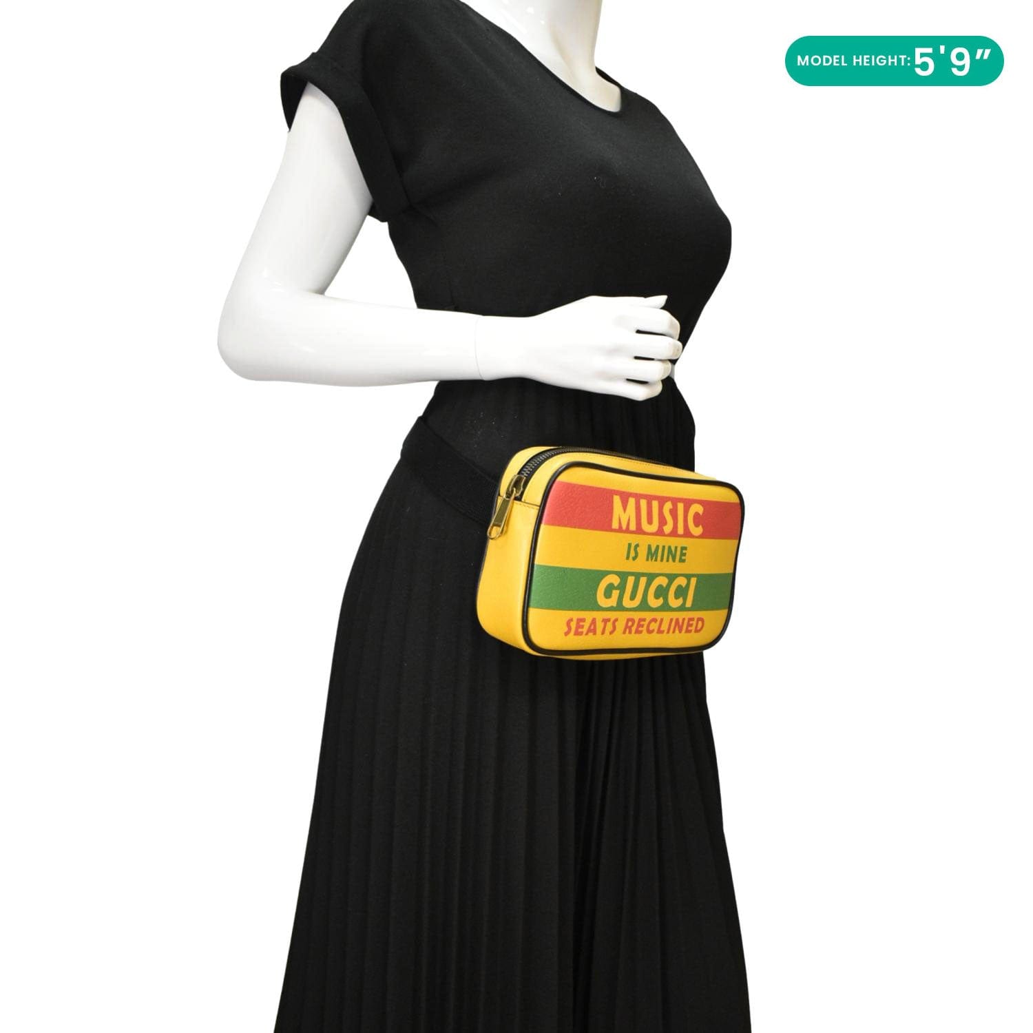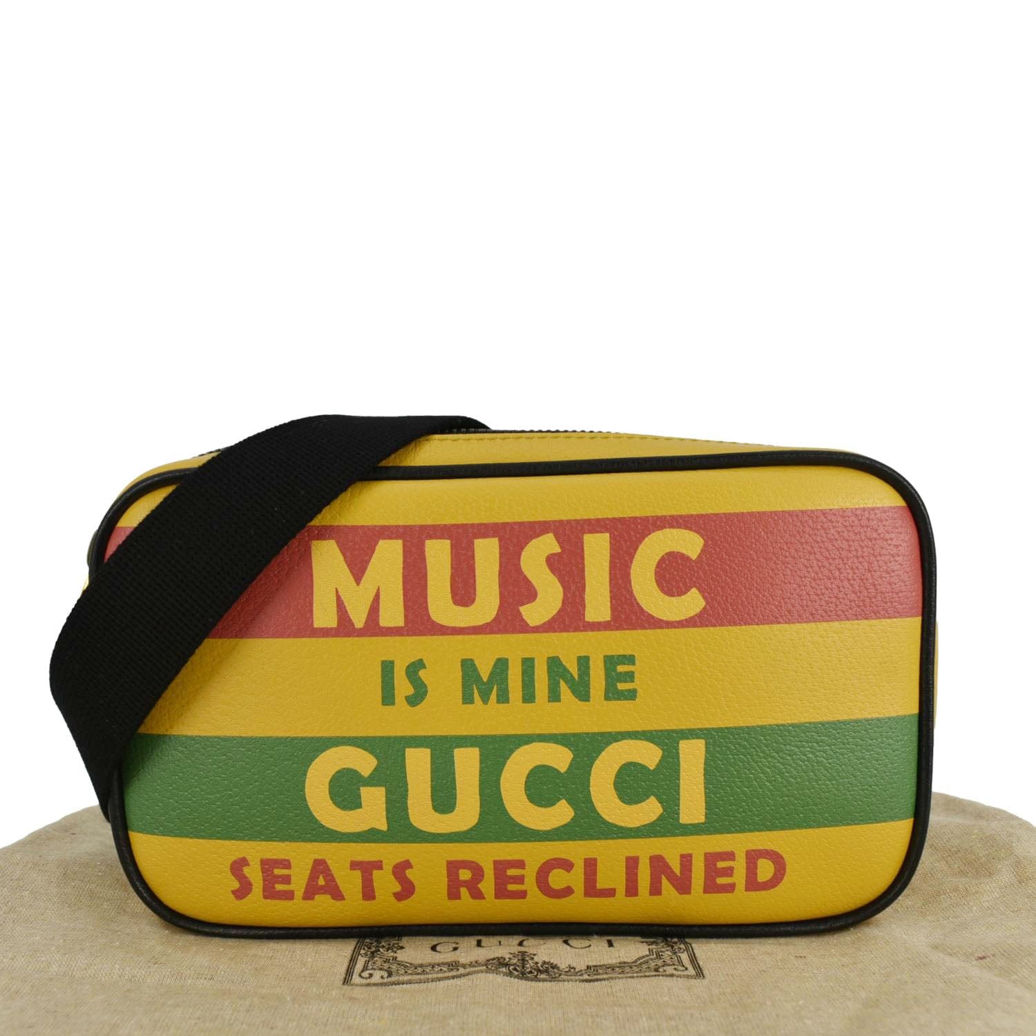 The GUCCI 100 Centennial "Music Is Mine" Leather Belt Bag in Multicolor celebrates Gucci’s 100th anniversary with a bold, retro-inspired design. Featuring vibrant colors and the iconic "Music Is Mine" slogan, this versatile bag blends vintage vibes with modern functionality.