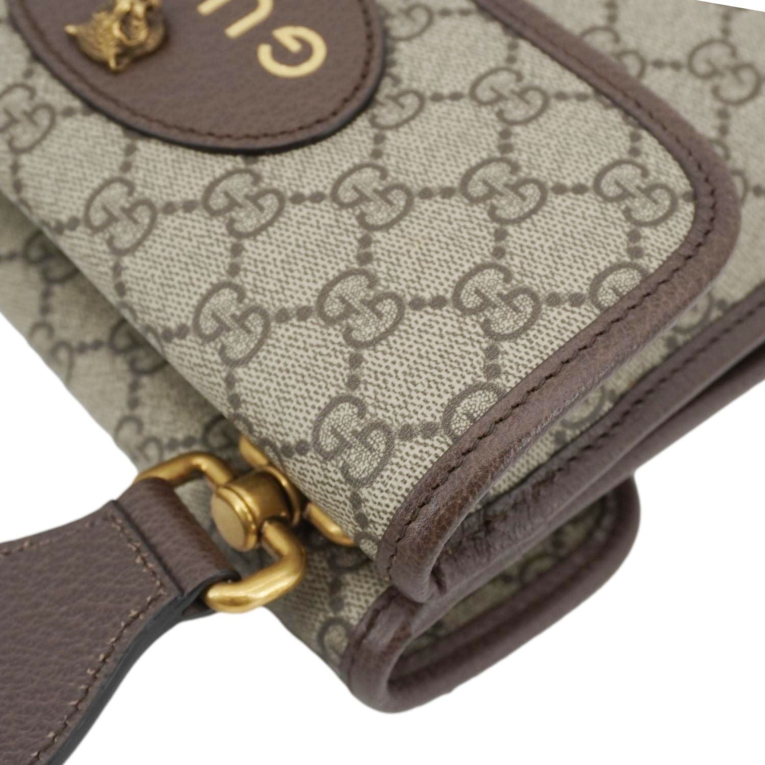 This compact and stylish crossbody bag crafted from GG Supreme canvas in beige features a structured silhouette and signature Gucci detailing. Perfect for everyday elegance.