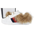 GUCCI New Ace Lamb Fur Lace Up Sneakers White