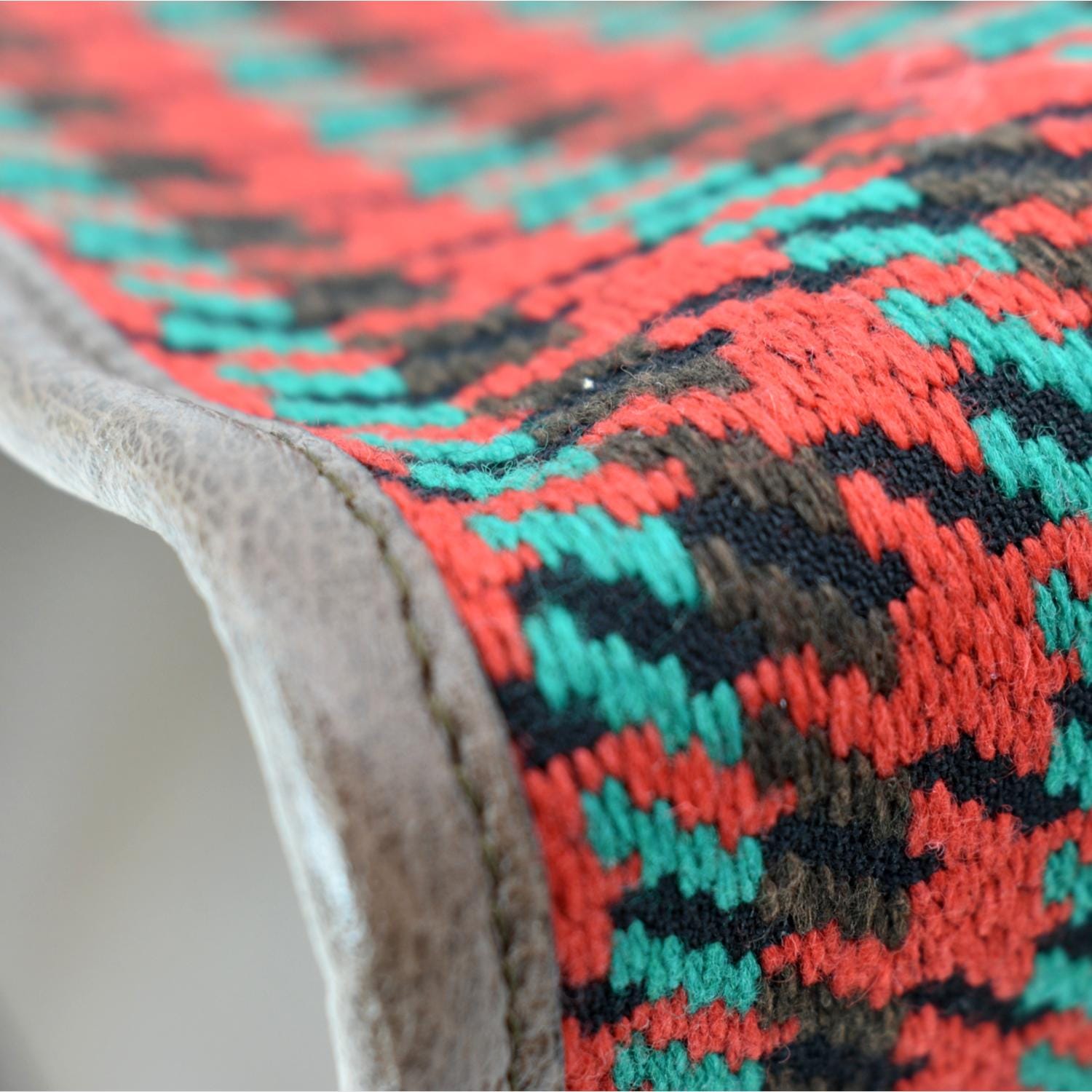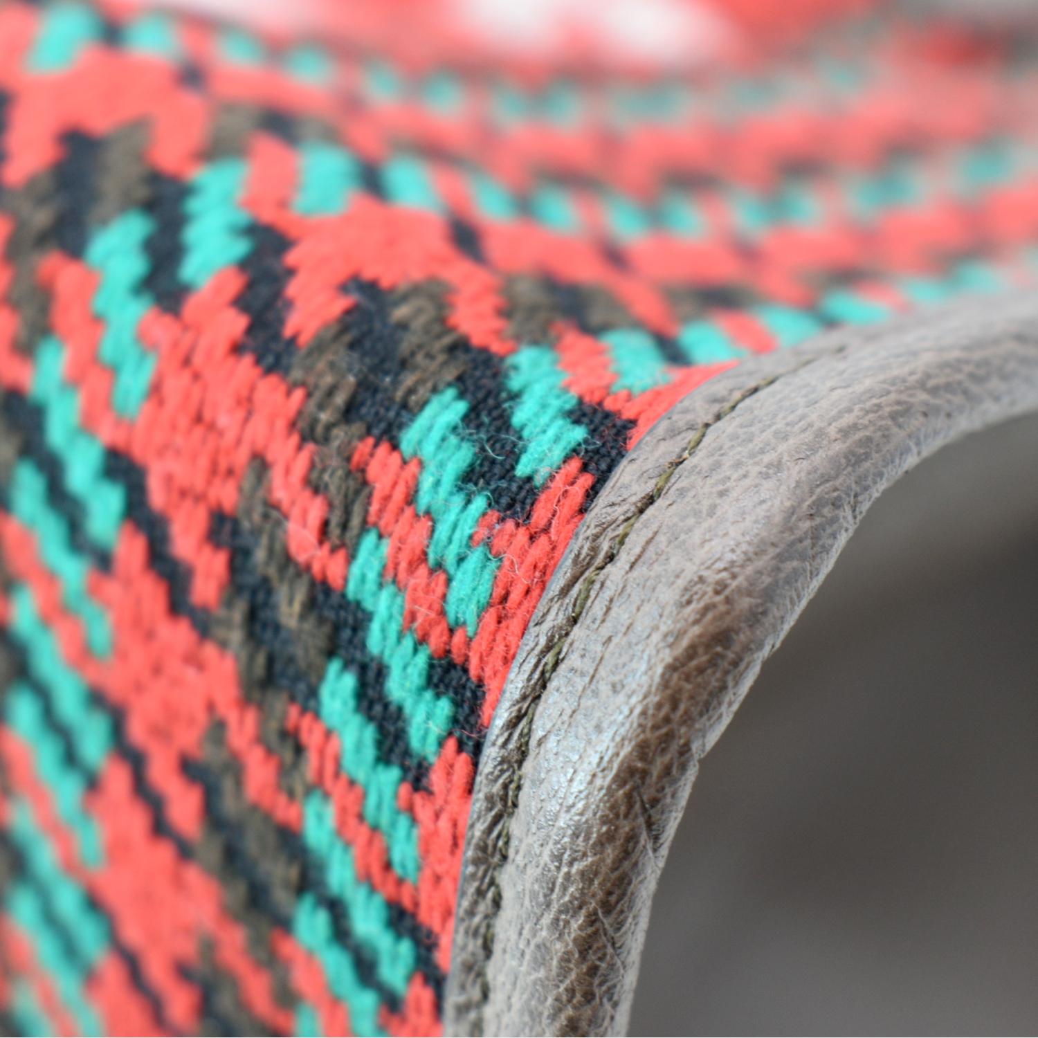 • Material: Houndstooth and stripe wool with leather trim