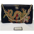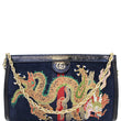 GUCCI Ophidia Dragon Embroidered Suede Leather Shoulder Bag Blue