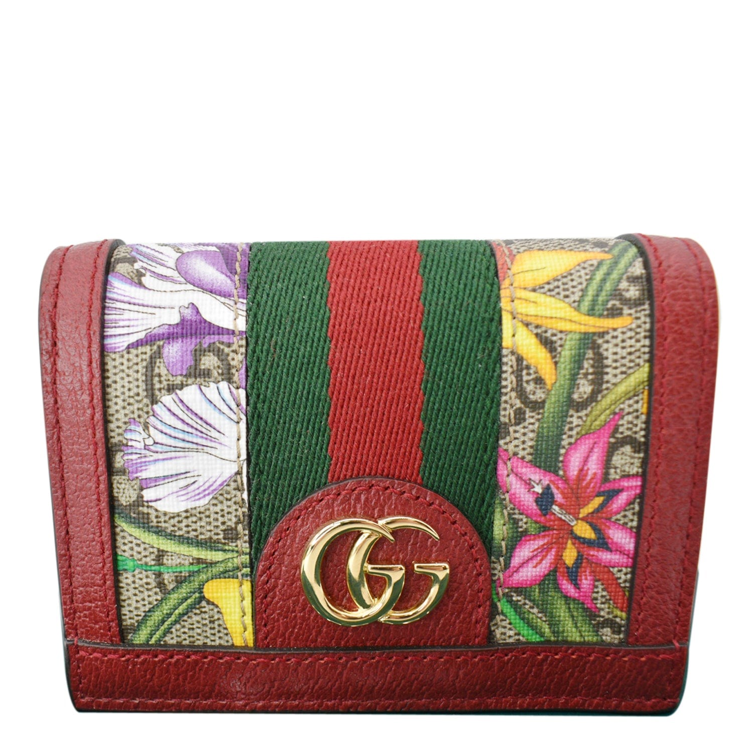 Ophidia Flora GG Supreme Canvas Card Case Wallet Red 523155 - 10% Off