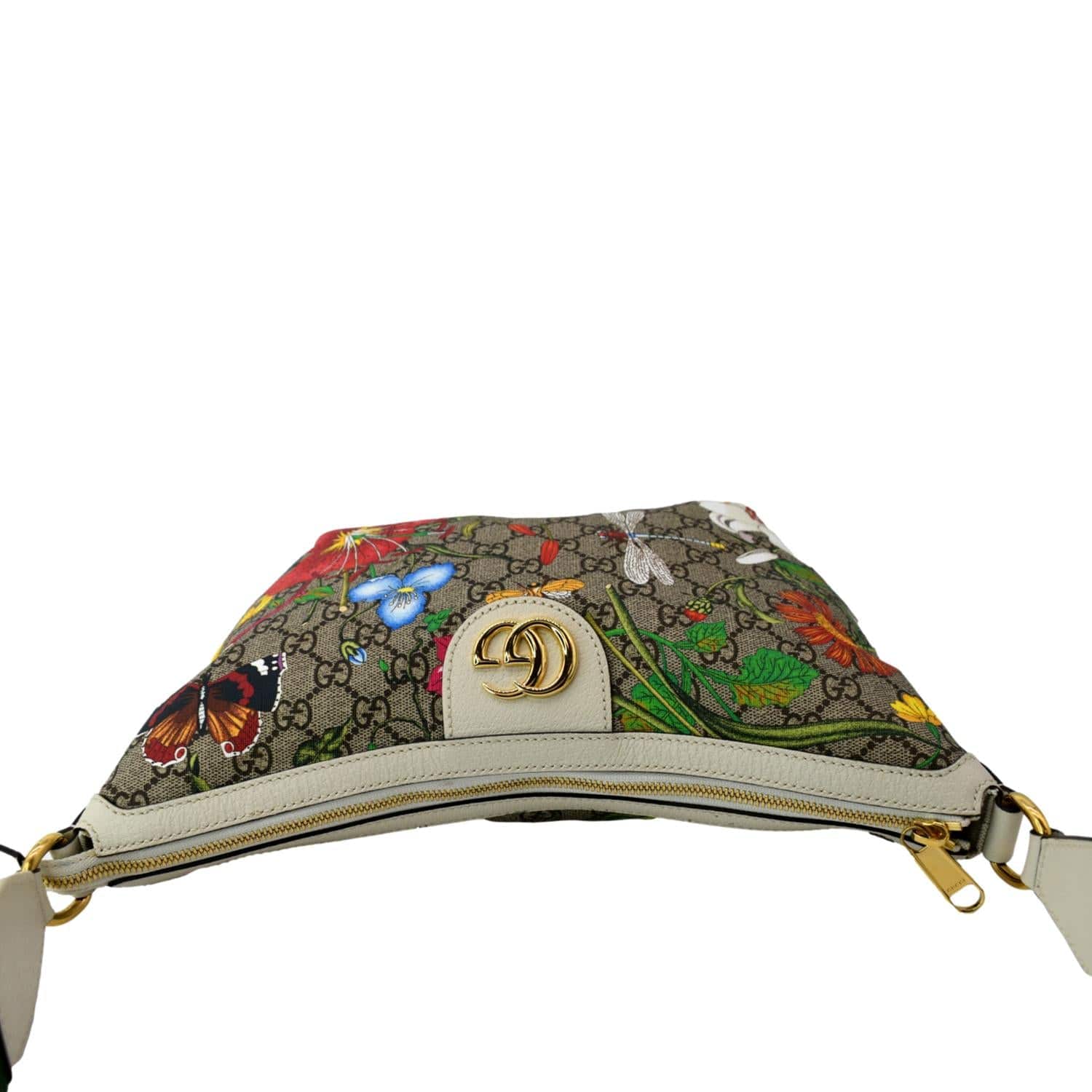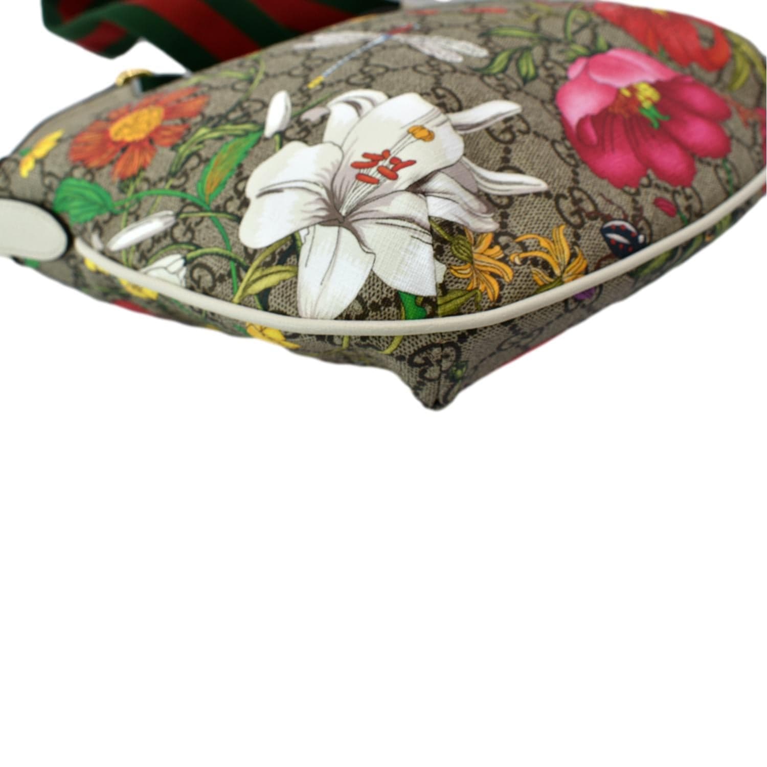 Ophidia Half Moon Small Flora GG Canvas Hobo Bag Beige 626509