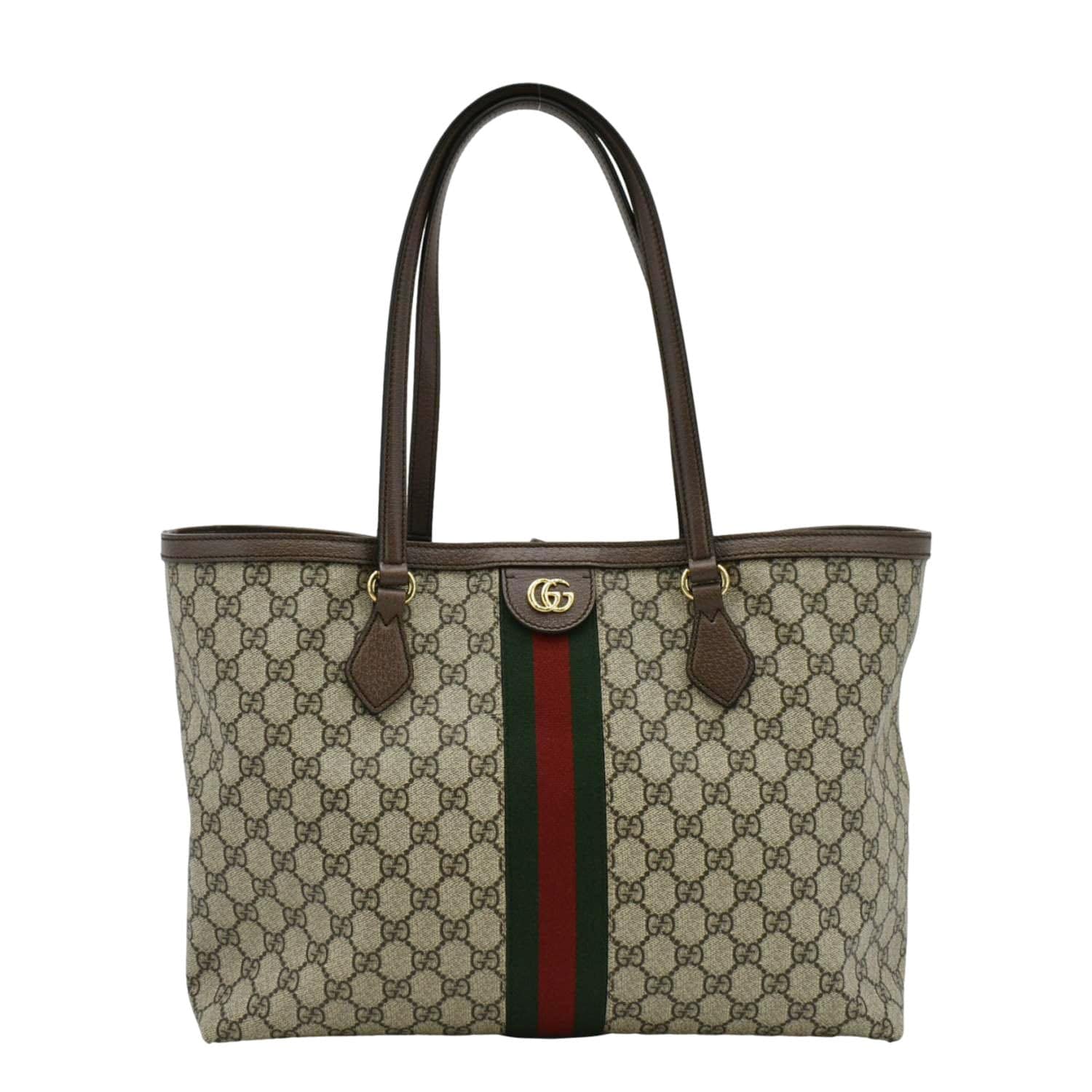 The GUCCI Ophidia Medium GG Supreme Tote Shoulder Bag in Beige is a stylish and spacious accessory. It features the classic GG Supreme canvas with signature web stripes, offering both luxury and practicality for daily use.