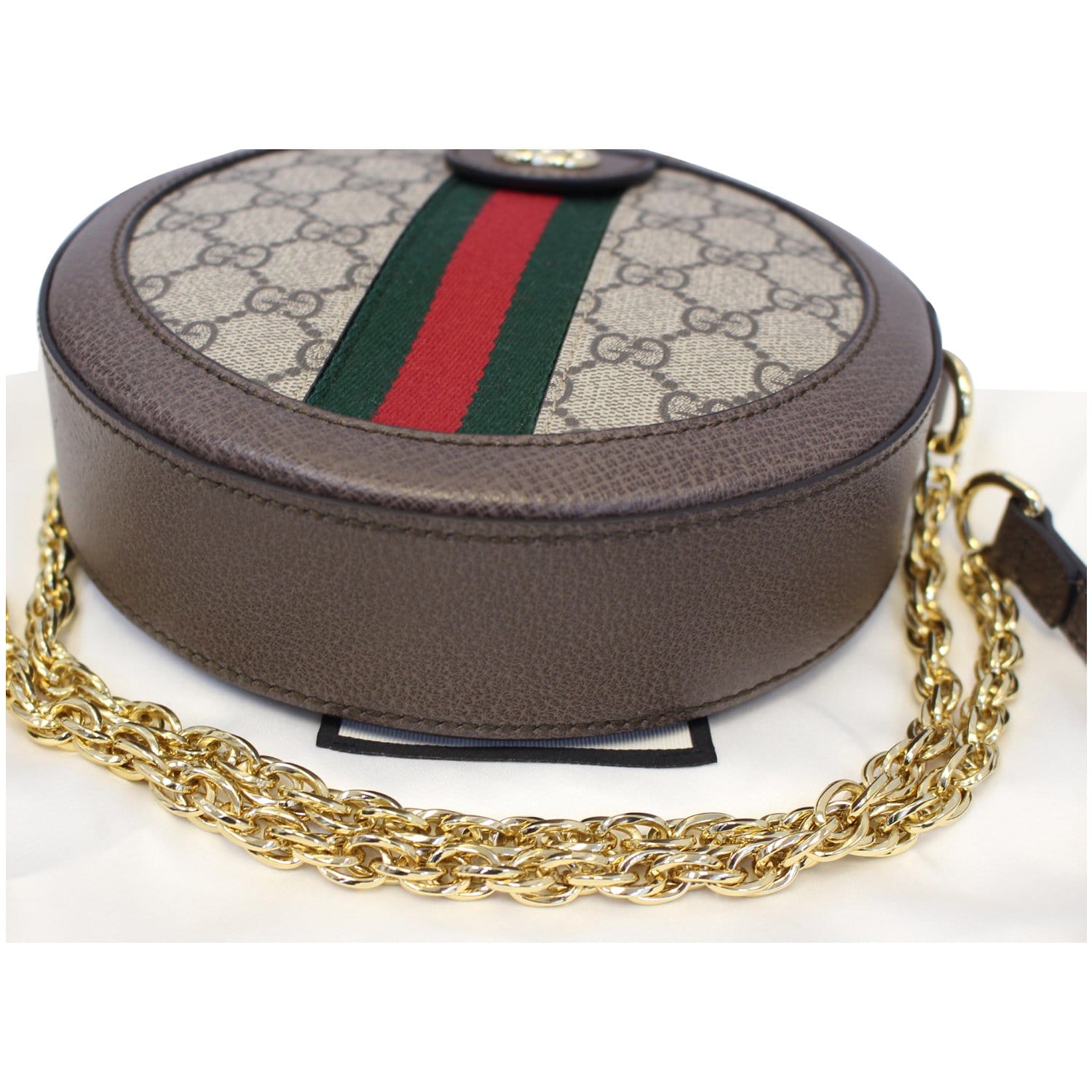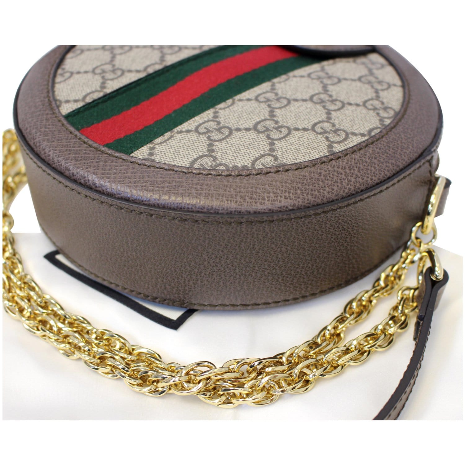 Gucci Ophidia Mini GG Round Supreme Monogram Web Crossbody Bag Beige
