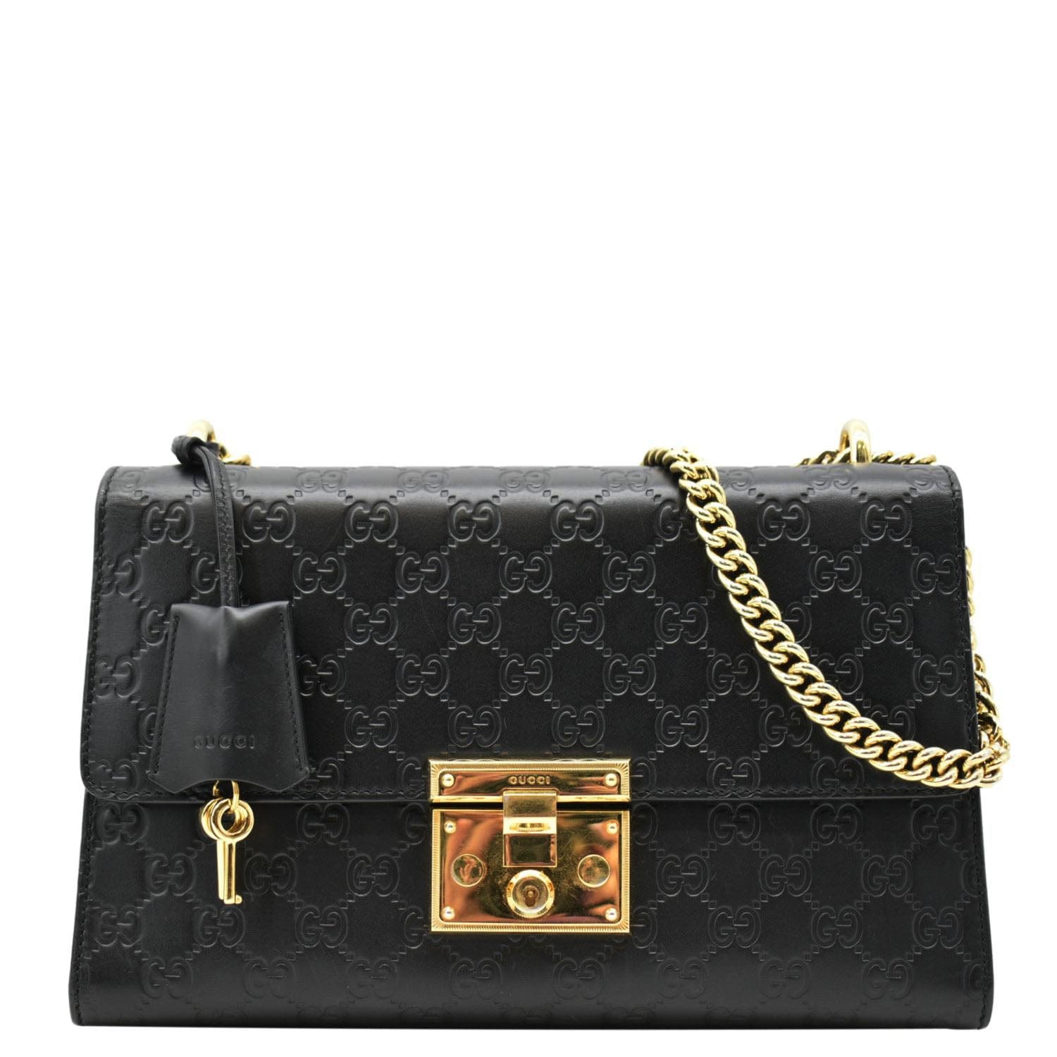 Padlock Medium GG Leathrer Chain Shoulder Bag Black 409486