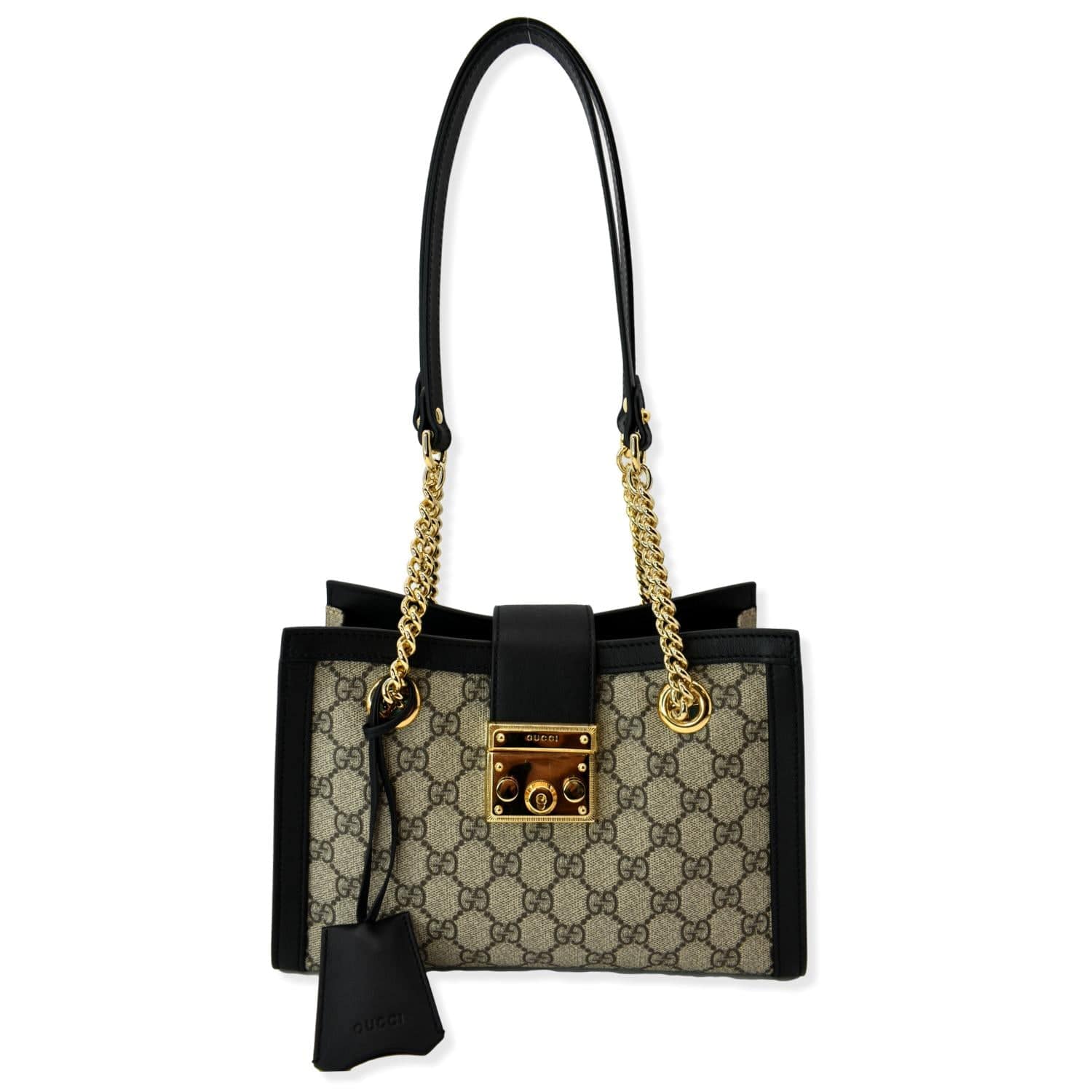 GUCCI Padlock Small GG Supreme Canvas Shoulder Bag Beige/Ebony 498156